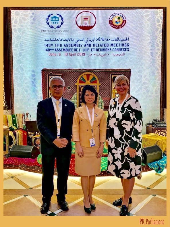 | เมื่อวันอาทิตย์ที่ ๗ เมษายน ๒๕๖๒ เวลา ๑๙.๐๐ นาฬิกา นางสุวรรณี สิริเวชชะพันธ์ สมาชิกสภานิติบัญญัติแห่งชาติและกรรมาธิการสหภาพรัฐสภาสตรี และนายอนุศาสน์ สุวรรณมงคล สมาชิกสภานิติบัญญัติแห่งชาติ ได้เข้าร่วมงานเลี้ยงรับรองการประชุมสหภาพรัฐสภาสตรี ครั้งที่ ๒๙ โดย Ms.Reem Al-Mansoori สมาชิกรัฐสภากาตาร์ และประธานการประชุมสหภาพรัฐสภาสตรี ครั้งที่ ๒๙ ให้เกียรติเป็นเจ้าภาพเลี้ยงอาหารค่ำ ณ ภัตตาคารยาสมิน เดอะเพิร์ล กรุงโดฮา รัฐกาตาร์ งานเลี้ยงรับรองนี้เป็นงานเลี้ยงที่จัดขึ้นเพื่อเป็นเกียรติแก่สมาชิกรัฐสภาสตรีและสมาชิกรัฐสภาบุรุษ ที่สนใจร่วมงาน โดยมีประธานรัฐสภากาตาร์ ประธานสหภาพรัฐสภา และเลขาธิการสหภาพรัฐสภา เข้าร่วมงานด้วย ทั้งนี้ เจ้าภาพจัดงานเลี้ยงรับรองนี้ได้อย่างสมเกียรติ แก่ผู้เข้าร่วมประชุม อีกทั้งยัง ได้จัดการแสดงทางวัฒนธรรมที่แสดงให้เห็นถึงประเพณีของสตรีมุสลิมก่อนเข้าพิธีแต่งงานด้วย เครดิต : ภาพและข่าวโดย สำนักองค์การรัฐสภาระหว่างประเทศ สำนักงานเลขาธิการ สภาผู้แทนราษฎร