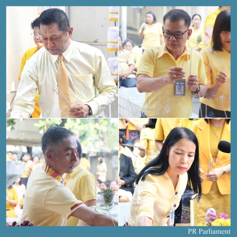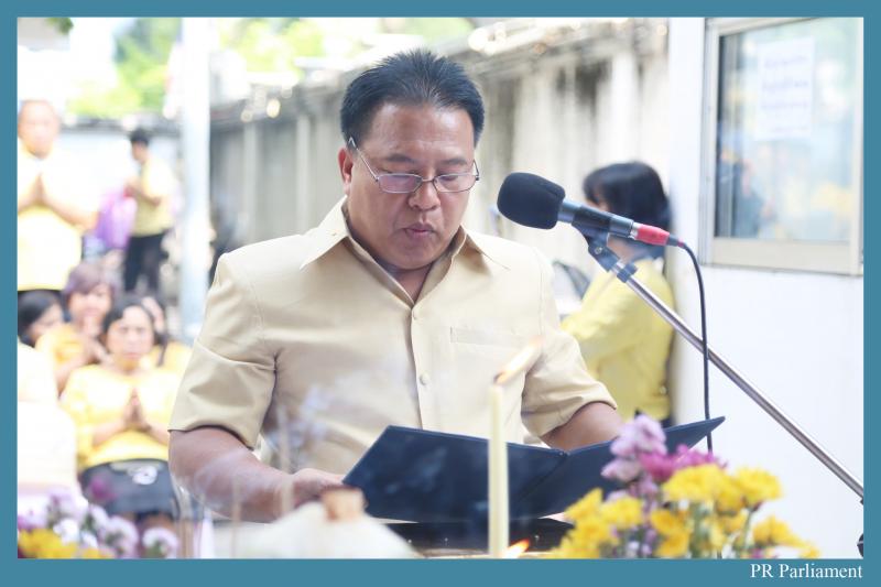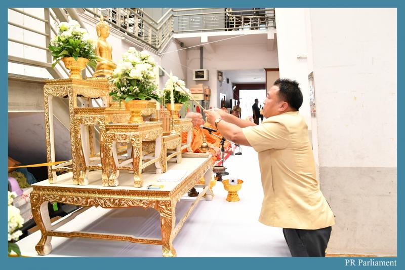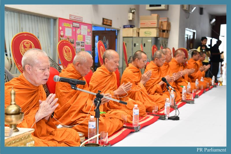 ต่อมา นายสุชาติ โรจน์ทองคำ รองเลขาธิการสภาผู้แทนราษฎร เป็นประธาน ในพิธีสงฆ์โดยได้จุดธูปเทียนบูชาพระรัตนตรัย อาราธนาพระสงฆ์ จำนวน ๑๐ รูป เจริญพระพุทธมนต์ ถวายภัตตาหารเพลแด่พระสงฆ์จุดธูป เทียน เครื่องทองน้อย ถวายผ้าบังสุกุล จตุปัจจัยไทยธรรม