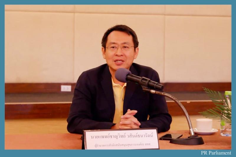 จากนั้น นายแพทย์ชาญวิทย์ วสันต์ธนารัตน์ ผู้อำนวยการสำนักสนับสนุนสุขภาวะองค์กร ภาคเอกชน สำนักงานกองทุนสนับสนุนการสร้างเสริมสุขภาพ บรรยายเรื่อง แนวคิดการพัฒนา คุณภาพชีวิตการทำงานขององค์กรภาครัฐ