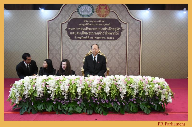 วันพฤหัสบดีที่ ๓๐ พฤษภาคม ๒๕๖๒ เวลา ๑๐.๓๐ นาฬิกา ณ ห้องประชุมริมแม่น้ำเจ้าพระยา ชั้น ๔ อาคารรัฐสภา เกียกกาย พลเรือเอกหม่อมเจ้าปุสาณ สวัสดิวัตน์ ประธานกรรมการ มูลนิธิพระบรมราชานุสรณ์พระบาทสมเด็จพระปกเกล้าเจ้าอยู่หัว และสมเด็จพระนางเจ้ารำไพพรรณีเป็นประธานในพิธีมอบทุนการศึกษาของมูลนิธิฯ