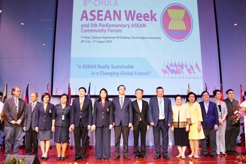 วันอังคารที่ ๓๐ กรกฎาคม ๒๕๖๒ เวลา ๐๙.๐๐ นาฬิกา ณ อาคารเฉลิมราชกุมารี ๖๐ พรรษา จุฬาลงกรณ์มหาวิทยาลัย ศ.ดร.บัณฑิต เอื้ออาภรณ์ อธิการบดีจุฬาลงกรณ์มหาวิทยาลัย เป็นประธาน ในพิธีเปิดงานเสวนาประชาคมอาเซียนของรัฐสภา ครั้งที่ ๕ และงานสัมมนาสัปดาห์จุฬาฯ อาเซียน ครั้งที่ ๘ ในหัวข้อ Is ASEAN Really Sustainable in a Changing Global Future? โดยมี ศ.กิตติคุณ ดร.สุทธิพันธ์ จิราธิวัฒน์ ผู้อำนวยการบริหารศูนย์อาเซียนศึกษา จุฬาลงกรณ์มหาวิทยาลัย กล่าวต้อนรับ และกล่าวรายงาน โอกาสนี้ น.ส.สุภาสินี ขมะสุนทร รองเลขาธิการสภาผู้แทนราษฎร กล่าวต้อนรับ ผู้เข้าร่วมงาน งานดังกล่าวจัดขึ้นโดย สำนักงานเลขาธิการสภาผู้แทนราษฎรร่วมกับ ศูนย์อาเซียนศึกษา จุฬาลงกรณ์ มหาวิทยาลัย สถาบันพระปกเกล้า และสถาบันระหว่างประเทศเพื่อการค้าและการพัฒนา (องค์การมหาชน) ระหว่างวันที่ ๓๐ สิงหาคม ๒ สิงหาคม ๒๕๖๒ โดยมีวัตถุประสงค์เพื่อสร้างความเข้าใจเกี่ยวกับบริบท ของประเทศไทยและประชาคมอาเซียนในการตอบสนองความเปลี่ยนแปลงระดับโลกและภูมิภาค ทั้งใน มิติสังคม วัฒนธรรมเศรษฐกิจ และการเมือง ความมั่นคงตลอดจน เพื่อประชาสัมพันธ์อาเซียนศึกษา ให้เป็นที่รู้จักในวงกว้าง