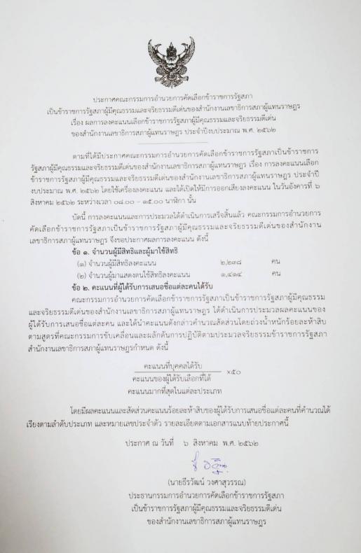 สำนักงานเลขาธิการสภาผู้แทนราษฎร ลงคะแนนเลือกผู้ได้รับการเสนอชื่อ