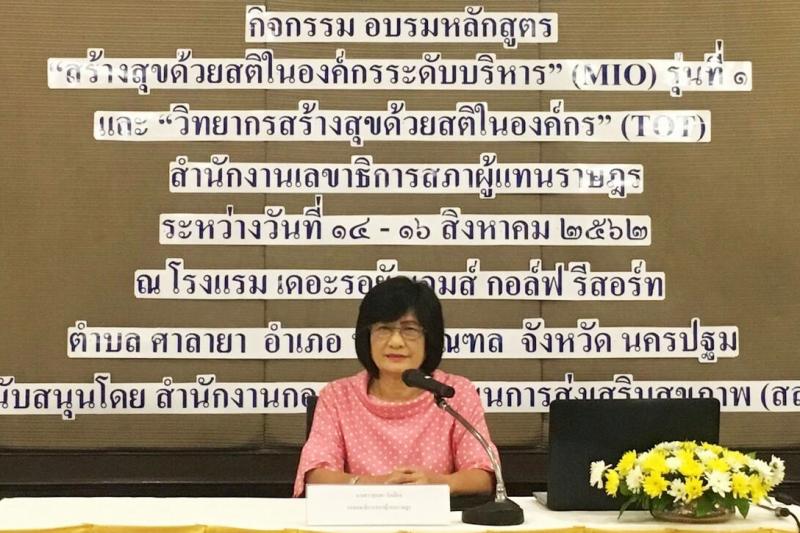 สร้างสุขด้วยสติในองค์กรระดับบริหาร (MIO) รุ่นที่ ๑ โดยมี น.ส.รุ่งนภา ขันธิโชติ