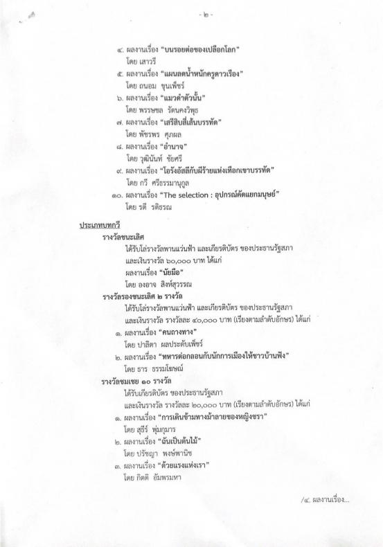 ๓๖๔ ผลงานและบทกวี จำนวน ๕๕๐ ผลงาน โดยคณะกรรมการฯ มีผลการตัดสิน ดังนี้