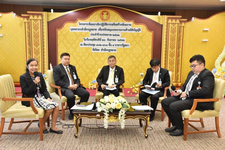 โครงการสัมมนาเชิงปฏิบัติการเสริมสร้างศักยภาพบุคลากรสำนักกฎหมายเพื่อสนับสนุนกระบวนงาน