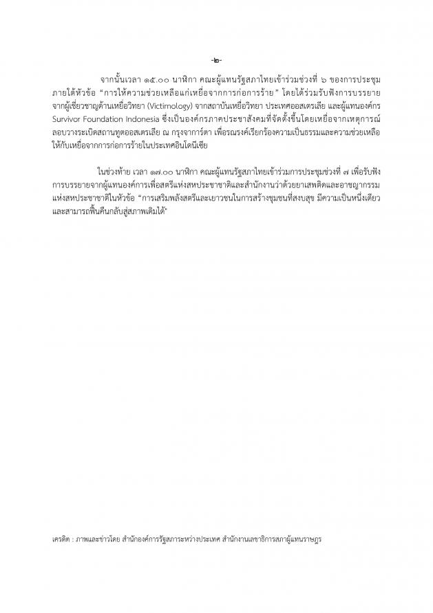 คณะผู้แทนรัฐสภาไทยเข้าร่วมการประชุมระดับภูมิภาคของสหภาพรัฐสภาว่าด้วยการต่อต้านการก่อร้ายในภูมิภาคเอเชีย-แปซิฟิก เป็นวันที่สอง