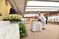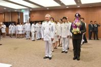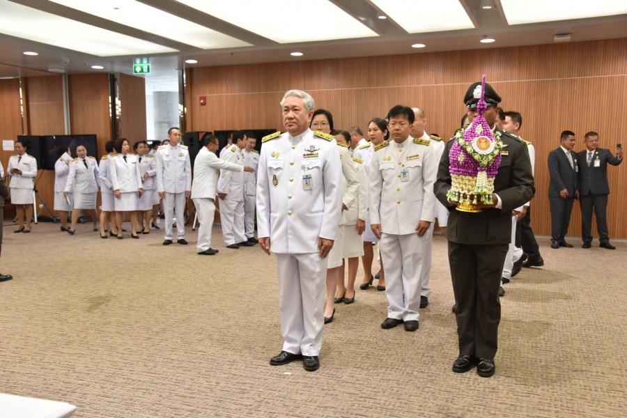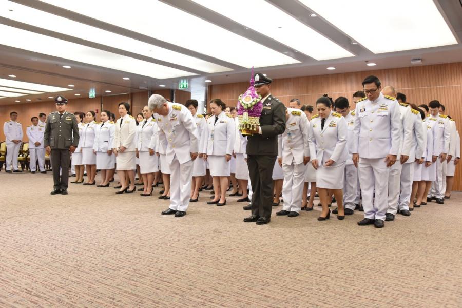 และข้าราชการสำนักงานเลขาธิการสภาผู้แทนราษฎร วางพานประดับพุ่มดอกไม้ถวายบังคม