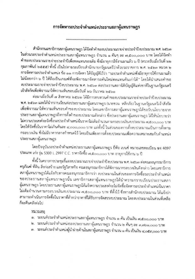 ในส่วนรถประจำตำแหน่งประธานสภาผู้แทนราษฎร (รายละเอียดตามเอกสารแนบ) |