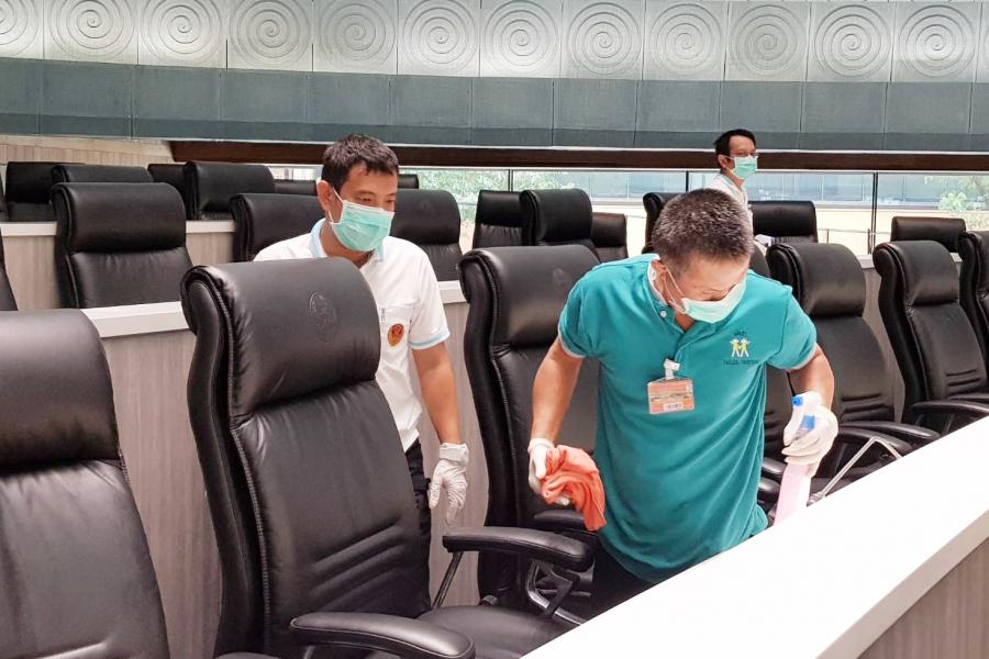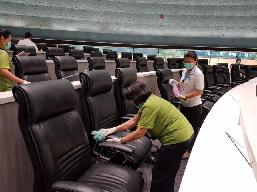 สภาผู้แทนราษฎร ด้วยวิธีการนำน้ำยาฆ่าเชื้อเช็ดบริเวณบนบัลลังก์ประธาน เคาน์เตอร์
