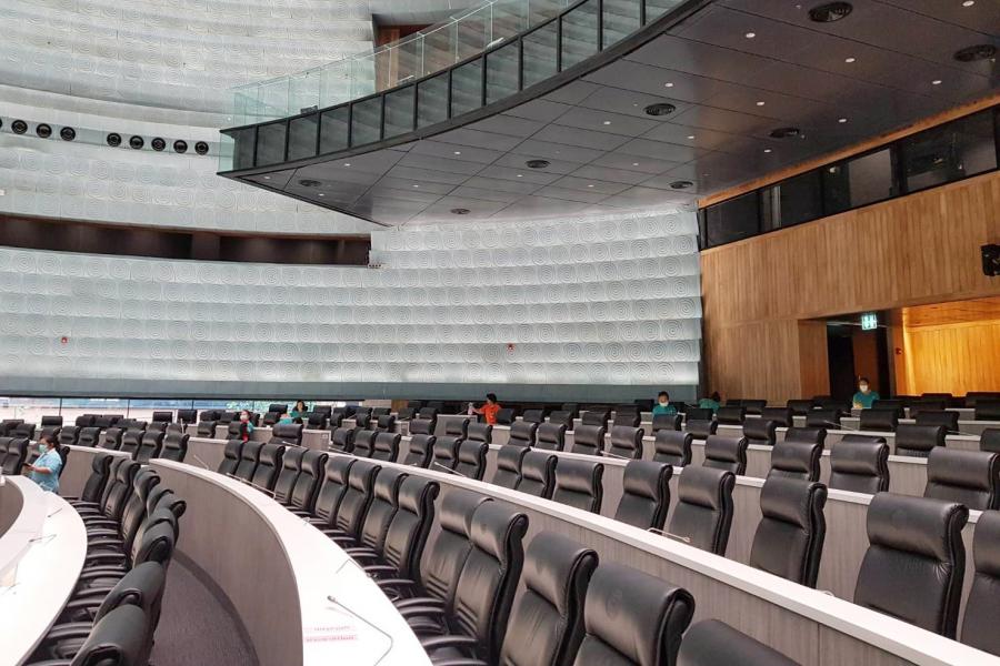 ได้ดำเนินการทำความสะอาดพื้นที่บริเวณภายในห้องประชุมรัฐสภา ตามดำริประธาน