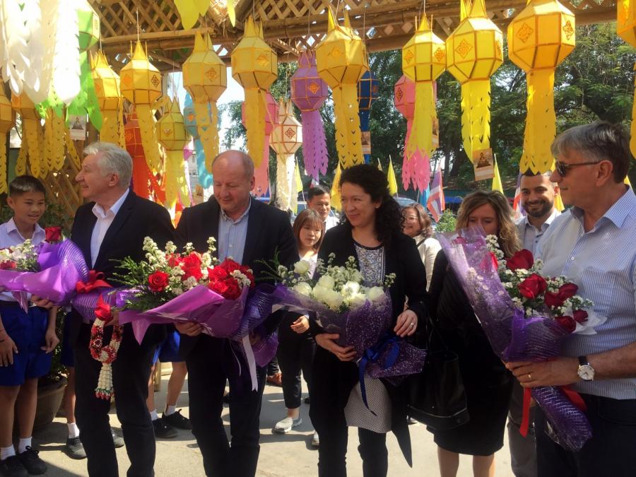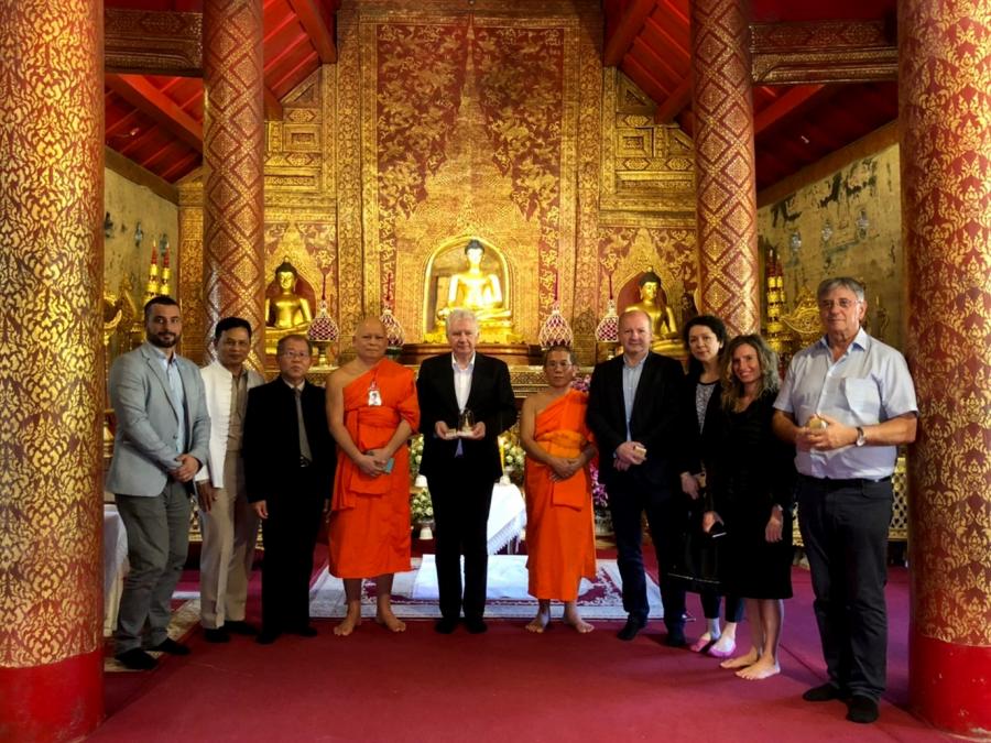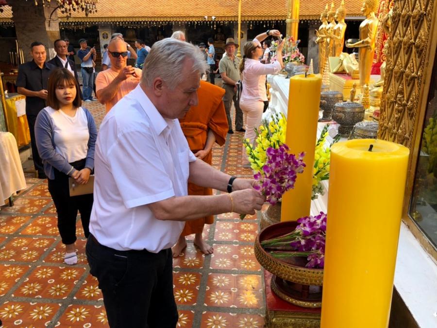 เมื่อวันพฤหัสบดีที่ ๖ กุมภาพันธ์ ๒๕๖๓ เวลา ๑๑.๐๐ นาฬิกา ณ ห้องรับรอง ท่าอากาศยานเชียงใหม่ นายอิสวาน ยาคอบ รองประธานรัฐสภาฮังการีและประธาน สมาคมความร่วมมือเกษตรกรแห่งชาติฮังการี พร้อมคณะ เดินทางเยือน จ.เชียงใหม่ ระหว่างวันที่ ๖-๘ กุมภาพันธ์ ๒๕๖๓ ในโอกาสเดินทางเยือนประเทศไทยอย่างเป็นทางการ ระหว่างวันที่ ๓-๙ กุมภาพันธ์ ๒๕๖๓ ในฐานะแขกของรัฐสภาไทย เพื่อส่งเสริมความสัมพันธ์ ระหว่างรัฐสภาไทยกับรัฐสภาฮังการี โดยเมื่อเดินทางถึง จ.เชียงใหม่ นายรัฐพล นราดิศร รองผู้ว่าราชการ จ.เชียงใหม่ ให้การต้อนรับ จากนั้น รองประธานรัฐสภาฮังการีและคณะ ได้เดินทางไปเยี่ยมชมสถานที่สำคัญต่างๆ ได้แก่ วัดพระสิงห์ โดยมีพระเทพสิงหวราจารย์ เจ้าอาวาสวัดพระสิงห์ และนายถนอม กุยแก้ว ปลัดอาวุโส อำเภอเมืองเชียงใหม่ พร้อมคณะนักเรียน โรงเรียนธรรมราชศึกษาให้การต้อนรับ จากนั้นเดินทางไปยังเจดีย์หลวงวรวิหาร และในช่วงบ่ายได้ไปเยี่ยมชม พระตำหนักภูพิงคราชนิเวศน์ วัดพระธาตุดอยสุเทพราชวรวิหารและอ่างเก็บน้ำห้วยตึงเฒ่า โดยมี พันเอกสุปกรณ์ เรือนสติ ผู้จัดการสำนักงานโครงการส่งเสริมการท่องเที่ยวอ่างเก็บน้ำห้วยตึงเฒ่า ให้การต้อนรับ เครดิตภาพและข่าว : โดย สำนักความสัมพันธ์ระหว่างประเทศ สำนักงานเลขาธิการ