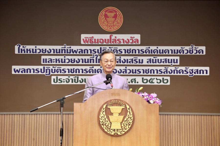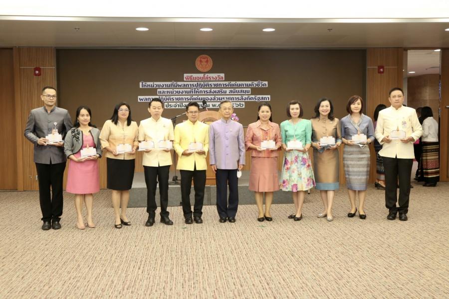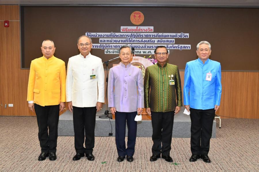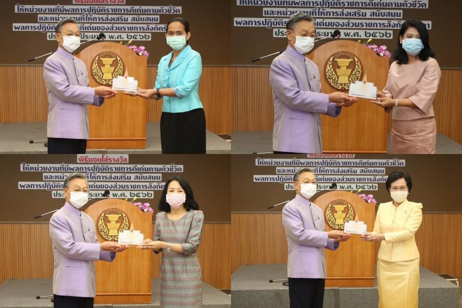 มอบโล่ให้หน่วยงานที่มีผลการปฏิบัติราชการดีเด่นตามตัวชี้วัด และหน่วยงานที่ให้การ