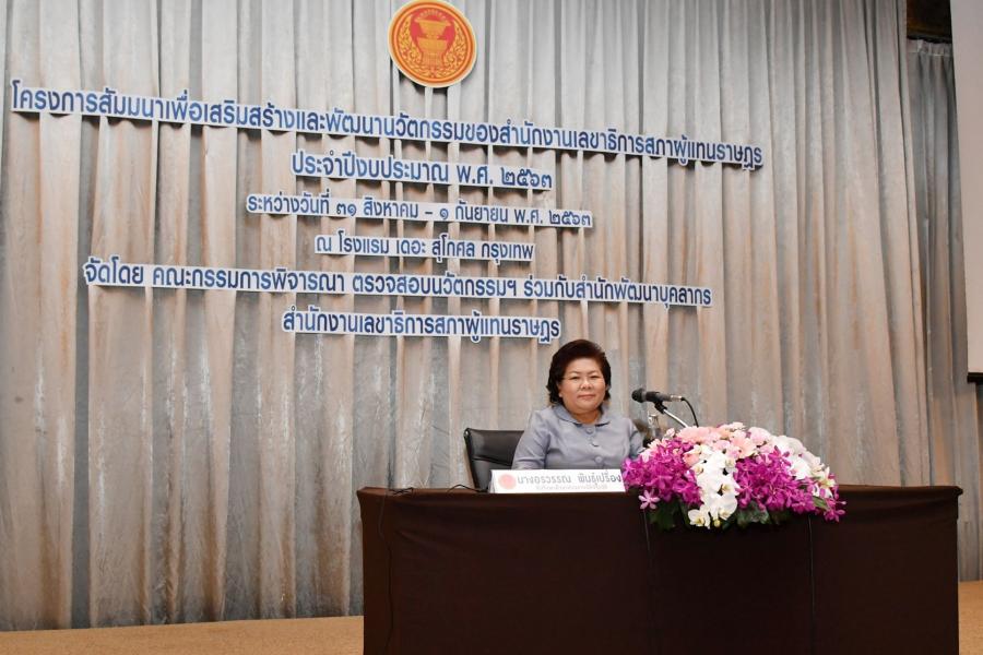 โครงการสัมมนาเพื่อเสริมสร้างและพัฒนานวัตกรรมของสำนักงานเลขาธิการสภาผู้แทนราษฎร ประจำปีงบประมาณ พ.ศ. ๒๕๖๓