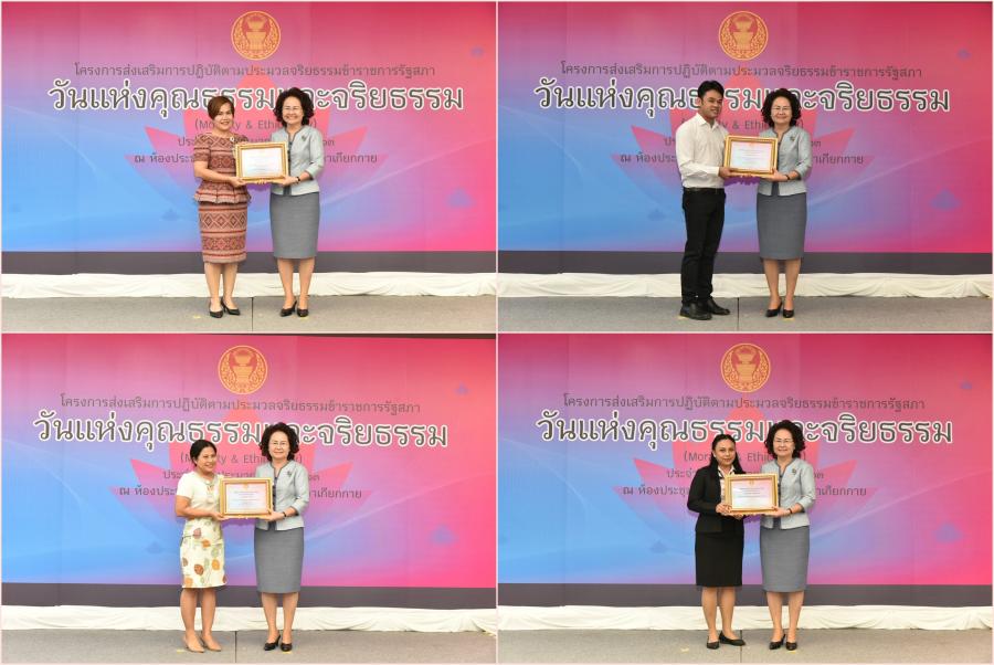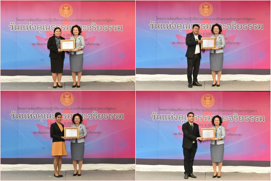 และจริยธรรมดีเด่นและสำนักที่มีผลงานด้านการส่งเสริมตามประมวลจริยธรรม