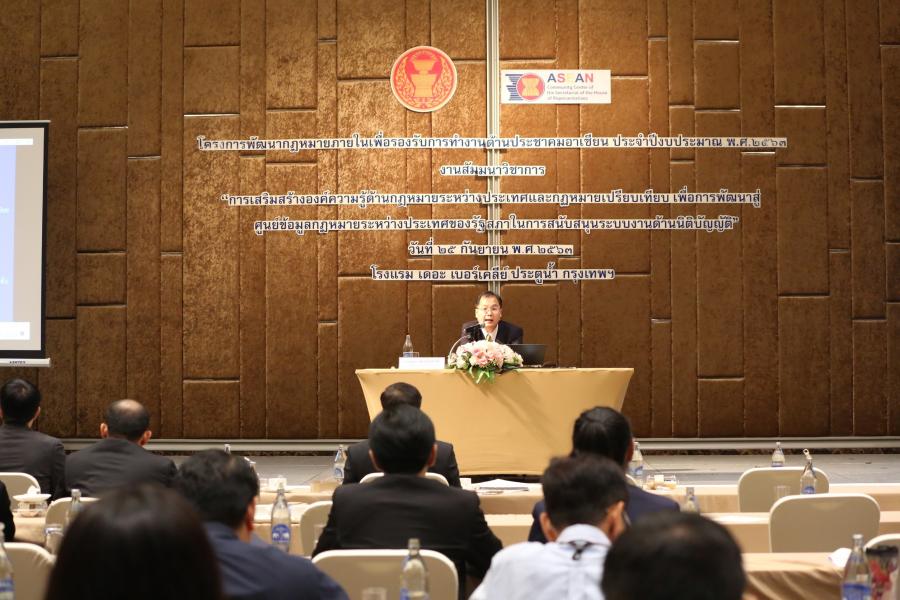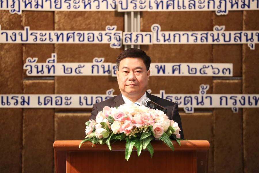 | วันศุกร์ที่ ๒๕ กันยายน ๒๕๖๓ เวลา ๐๙.๐๐ นาฬิกา ณ ห้อง Jubilee Ballroom ชั้น ๑๑ โรงแรม เดอะเบอร์เคลีย์ ประตูน้ำ กรุงเทพฯ นายคุณวุฒิ ตันตระกูล รองเลขาธิการ สภาผู้แทนราษฎร เป็นประธานในพิธีเปิดสัมมนาวิชาการ การเสริมสร้างองค์ความรู้ด้าน กฎหมายระหว่างประเทศและกฎหมายเปรียบเทียบเพื่อการพัฒนาสู่ศูนย์ข้อมูลกฎหมาย ระหว่างประเทศของรัฐสภาในการสนับสนุนระบบงานด้านนิติบัญญัติ โดยมี นายพีรเดช คงเดชา นิติกรชำนาญการพิเศษ กล่าวรายงาน ซึ่งโครงการดังกล่าว จัดขึ้น โดยมี วัตถุประสงค์เพื่อเสริมสร้างองค์ความรู้ด้านกฎหมายระหว่างประเทศ กฎหมายเปรียบเทียบ ให้กับข้าราชการรัฐสภาสามัญมาใช้ในการสนับสนุนกระบวนการนิติบัญญัติและส่งเสริม ด้านการพัฒนาเครือข่ายการทำงานร่วมกับองค์กรเครือข่ายด้านประชาคมอาเซียนของรัฐสภา จากนั้น เป็นการปาฐกถาพิเศษ หัวข้อ "กฎหมายระหว่างประเทศภายใต้ระเบียบโลกใหม่ : ความท้าทายและผลกระทบต่อประเทศไทยและภูมิภาคอาเซียน" โดย ศ.ดร.ประสิทธิ์ ปิวาวัฒนพานิช ผู้อำนวยการศูนย์กฎหมายระหว่างประเทศ คณะนิติศาสตร์ มหาวิทยาลัย ธรรมศาสตร์ สำหรับในเวลา ๑๐.๓๐ ๑๑.๓๐ นาฬิกา มีการบรรยาย หัวข้อ ประเด็นทางกฎหมาย เกี่ยวกับการคุ้มครองจากการถูกกลั่นแกล้งรังแกบนพื้นที่ไซเบอร์ (Cyber bullying) ศึกษา เปรียบเทียบกฎหมายไทยกับต่างประเทศ โดย อาจารย์กฤษฎา แสงเจริญทรัพย์ อาจารย์ประจำสาขาวิชานิติศาสตร์ คณะมนุษยศาสตร์และสังคมศาสตร์ มหาวิทยาลัยราชภัฏ เพชรบุรี ต่อจากนั้นเป็นการการบรรยาย หัวข้อ ความร่วมมือระหว่างประเทศเพื่อการป้องกัน และปราบปรามอาชญากรรมคอมพิวเตอร์และอาชญากรรมทางไซเบอร์ : ความท้าทายและ โจทย์ใหญ่ของอาเซียน โดย อ.ดร.จอมพล พิทักษ์สันตโยธิน อาจารย์ประจำคณะสังคมศาสตร์ และมนุษยศาสตร์ มหาวิทยาลัยมหิดล ในการนี้ นายคุณวุฒิ ตันตระกูล รองเลขาธิการสภาผู้แทนราษฎร ได้มอบของที่ระลึก แก่วิทยากรเพื่อแสดงความขอบคุณ