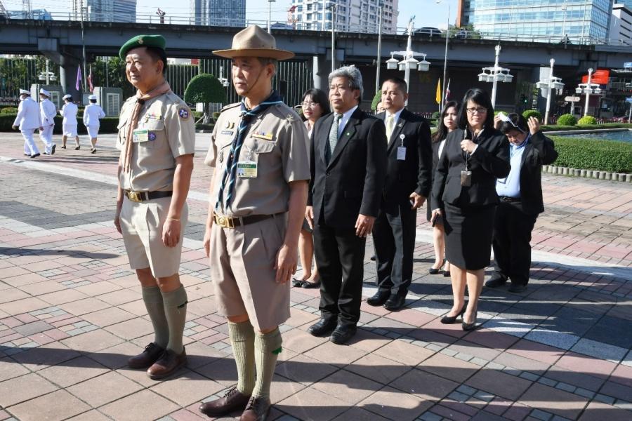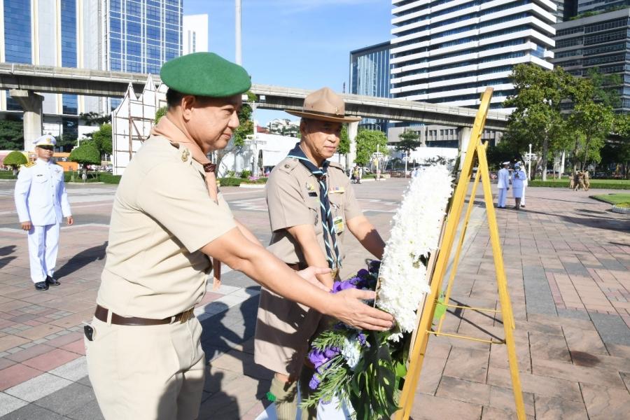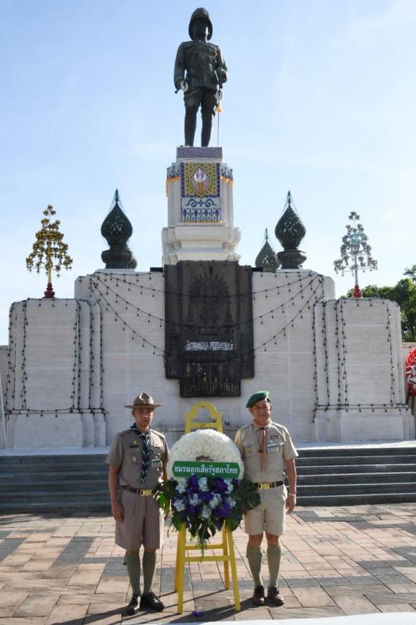พล.อ. วรพงษ์ สง่าเนตร สมาชิกวุฒิสภาและประธาน ชมรมลูกเสือรัฐสภาไทย นายอนุศักดิ์ คงมาลัย สมาชิกวุฒิสภา และกรรมการฯ วางพวงมาลาถวายราชสักการะพระบรมราชานุสาวรีย์ พระบาทสมเด็จพระมงกุฎเกล้าเจ้าอยู่หัวในนาม ชมรมลูกเสือรัฐสภาไทย