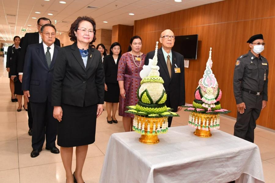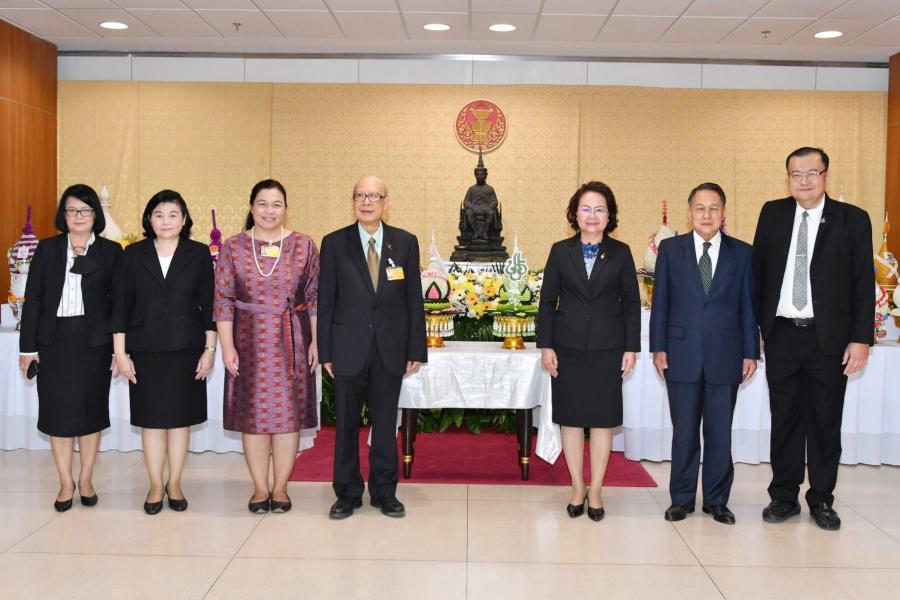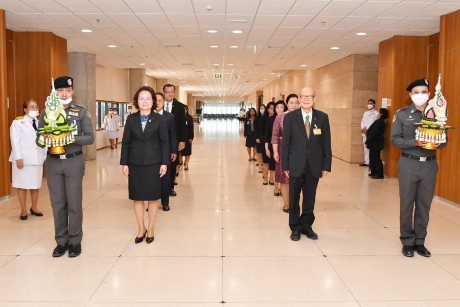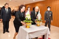 รองประธานกรรมการมูลนิธิพระบรมราชานุสรณ์พระบาทสมเด็จพระปกเกล้าเจ้าอยู่หัวและสมเด็จพระนางเจ้ารำไพพรรณี คนที่สอง และกรรมการมูลนิธิประชาธิปก-รำไพพรรณี พร้อมด้วยคณะกรรมการมูลนิธิฯ วางพานประดับพุ่มดอกไม้ถวายบังคมพระรูปต้นแบบพระบาทสมเด็จพระปกเกล้าเจ้าอยู่หัว