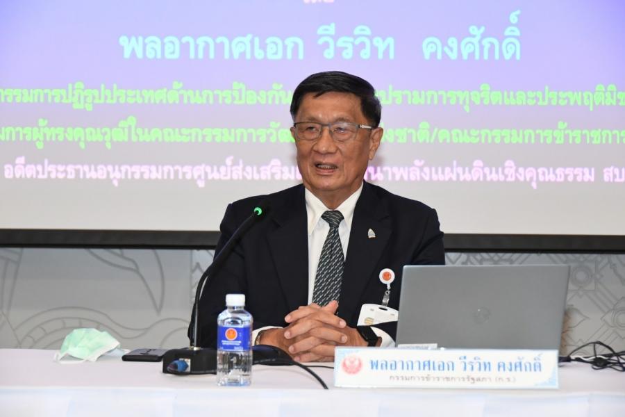 วันพฤหัสบดีที่ 8 เมษายน 2564  เวลา 09.00 นาฬิกา ณ ห้องสัมมนาสัปปายะ 1 (ชั้นบี 1) อาคารรัฐสภา พล.อ.อ.วีรวิท คงศักดิ์ กรรมการปฏิรูปประเทศด้านการป้องกันและปราบปรามการทุจริตประพฤติมิชอบ กรรมการผู้ทรงคุณวุฒิ ในคณะกรรมการวัฒนธรรมแห่งชาติ คณะกรรมการข้าราชการรัฐสภา (ก.ร.) และอดีตประธานอนุกรรมการศูนย์ส่งเสริมและพัฒนาพลังแผ่นดินเชิงคุณธรรม ให้เกียรติเป็นวิทยากรบรรยายเรื่อง "การสร้างค่านิยมร่วมของส่วนราชการสังกัดรัฐสภาและการขับเคลื่อนสู่องค์กรคุณธรรมต้นแบบและการถอดบทเรียน" ในการสัมมนาเชิงปฏิบัติการระดับผู้บังคับบัญชากลุ่มงานของสำนักงานเลขาธิการสภาผู้แทนราษฎร ตามโครงการสร้างเสริมจริยธรรมนำทีมงาน ประจำปีงบประมาณ พ.ศ. 2564 รุ่นที่ 1 โดยมี   นายณัฏฐกฤษฎ์ วงศ์เจริญ ที่ปรึกษาด้านระบบงานนิติบัญญัติ พร้อมด้วย นายชูพงศ์ นิลสกุล ผู้อำนวยการสำนักพัฒนาบุคลากรและผู้บังคับบัญชากลุ่มงาน เข้าร่วมการสัมมนา