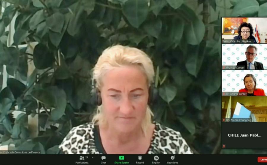 Ms. Cicilia Widegren สมาชิกรัฐสภาสวีเดน ทำหน้าที่ประธานการประชุม เพื่อพิจารณาเอกสารต่าง ๆ ที่เกี่ยวข้องกับการบริหารงบประมาณและการบัญชีภายในสหภาพรัฐสภา อาทิ 1) รายงานการเงิน ประจำปี 2563 (Financial Results for 2020) 2) รายงานของผู้สอบบัญชีภายนอก โดยสำนักงานผู้ควบคุมและตรวจสอบบัญชีแห่งอินเดีย (Office of the Comptroller and Auditor General of India: CAG) เกี่ยวกับรายงานการเงิน ประจำปี 2563 (Auditors Report) 3) สถานะทางการเงินของสหภาพรัฐสภา ณ วันที่ 31 มีนาคม 2564 (Financial Situation of the IPU at 31 March 2021) 4) การระดมเงินทุนโดยความสมัครใจ (Mobilization of Voluntary Funding)