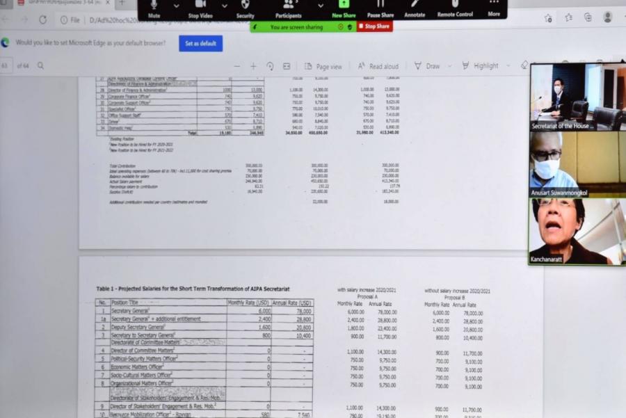 ประชุมคณะผู้แทนรัฐสภาไทย ในการประชุมคณะทำงานของสมัชชารัฐสภาอาเซียน (AIPA) ครั้งที่ 3/2564 ผ่านสื่ออิเล็กทรอนิกส์