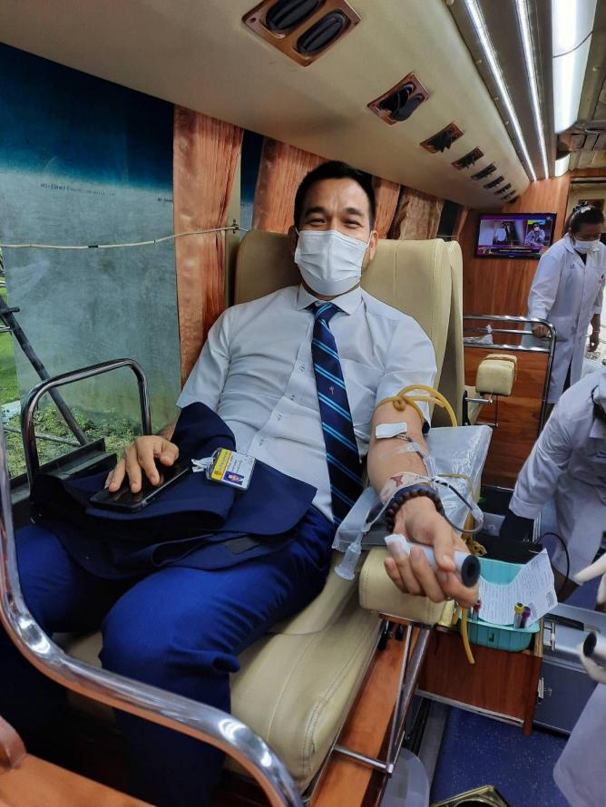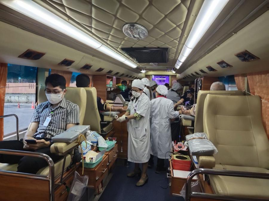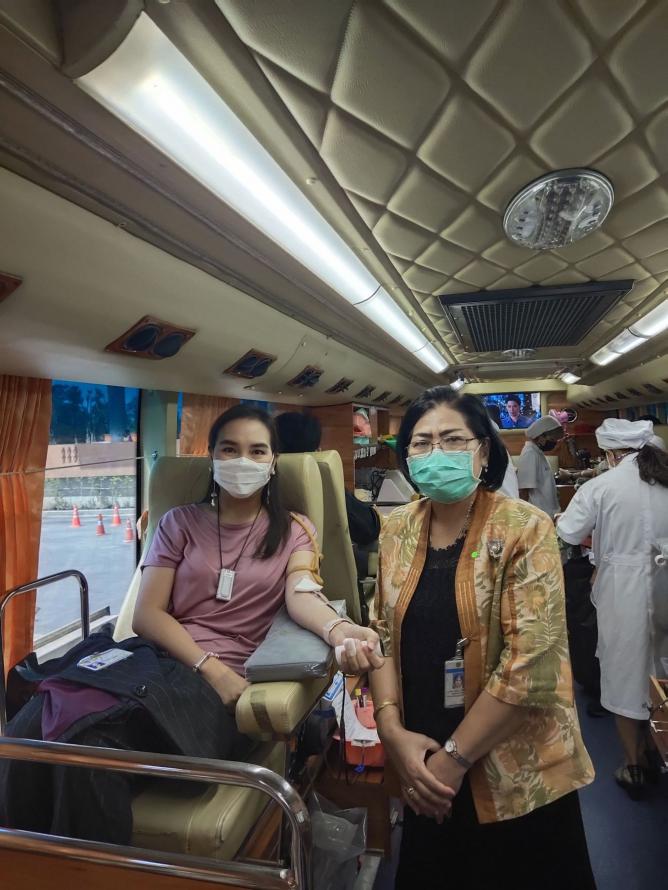 ในการนี้ ศูนย์บริการโลหิตแห่งชาติ สภากาชาดไทย นำรถบริจาคเลือดเคลื่อนที่มาให้บริการ เพื่ออำนวยความสะดวกให้กับผู้ที่ประสงค์จะบริจาคโลหิต โดยมีการตรวจคัดกรองเบื้องต้น และมีมาตรการให้ผู้บริจาคโลหิตโดยเว้นระยะห่างระหว่างบุคคล |