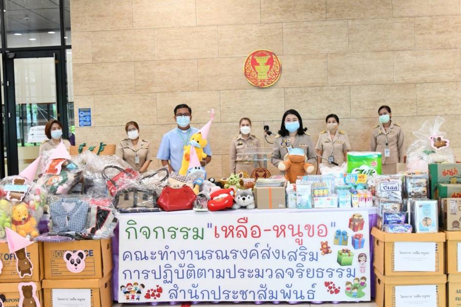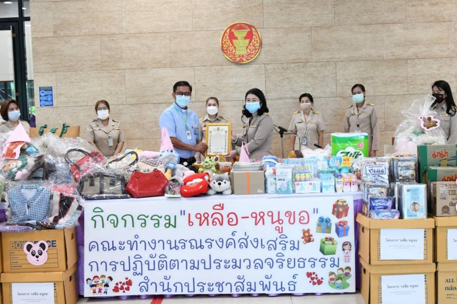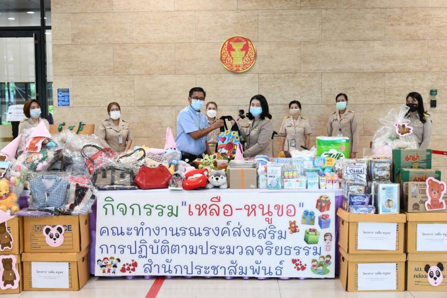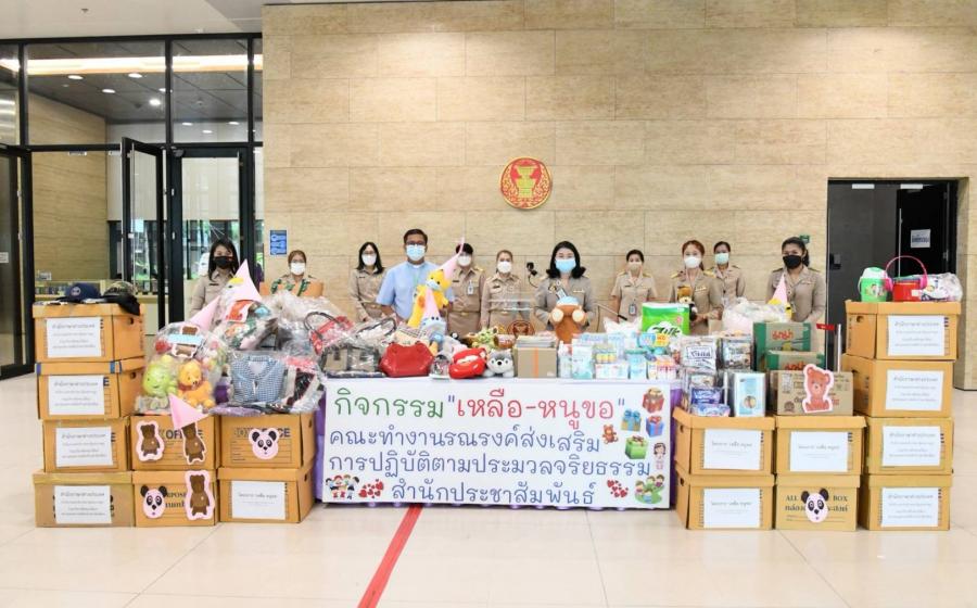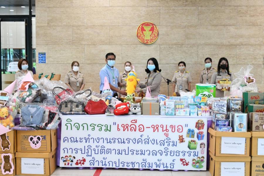 ผู้อำนวยการสำนักประชาสัมพันธ์ พร้อมด้วยผู้บังคับบัญชากลุ่มงาน และคณะทำงานรณรงค์ส่งเสริมการปฏิบัติตามประมวลจริยธรรมข้าราชการรัฐสภาและความโปร่งใสประจำสำนักประชาสัมพันธ์ มอบสิ่งของอุปโภคบริโภค และของที่ได้รับการบริจาคจากบุคลากรของสำนักประชาสัมพันธ์ ในกิจกรรม เหลือ - หนูขอ ภายใต้โครงการ ทำดี ธรรมดี ปี 4