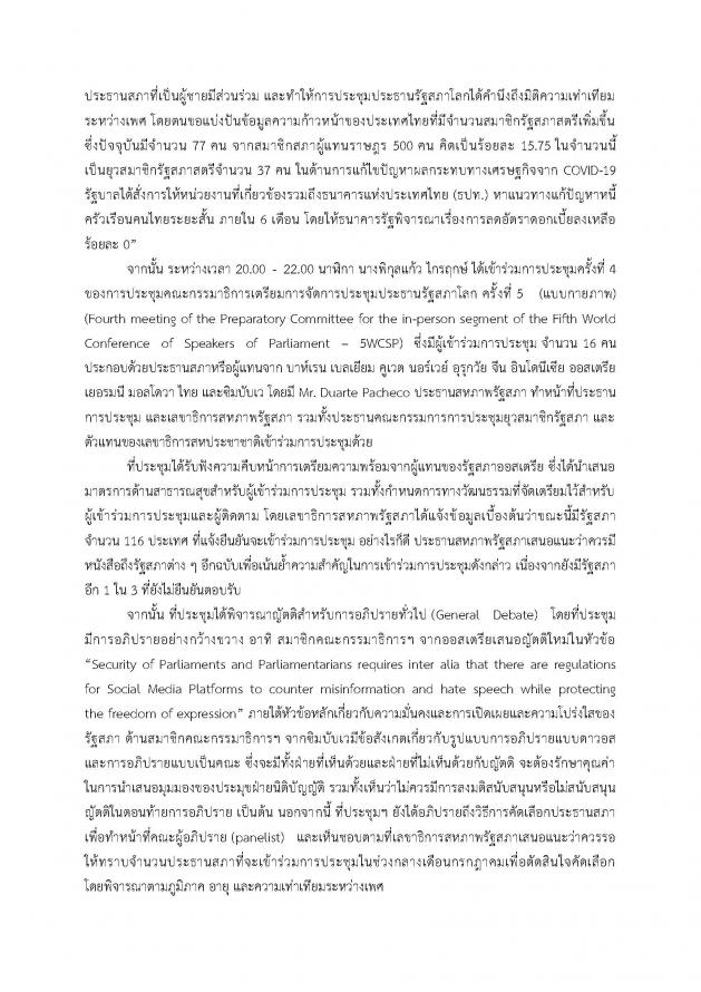 การประชุม ครั้งที่ 3 ของคณะกรรมาธิการเตรียมการจัดการประชุมสุดยอดประธานรัฐสภาสตรี ครั้งที่ 13 (แบบกายภาพ) (Preparatory Committee for the in-person segment of the 13th Summit of Women Speakers of Parliament 13SWSP) ผ่านสื่ออิเล็กทรอนิกส์