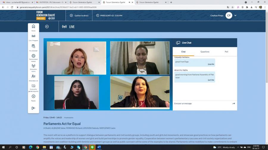 สมาชิกรัฐสภาเข้าร่วมประชุม Side Event ในการประชุม Generation Equality Forum (GEF) ในหัวข้อ Parliaments Act for Equal