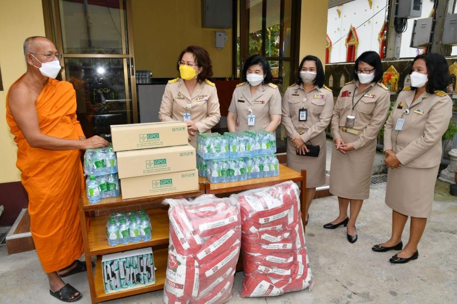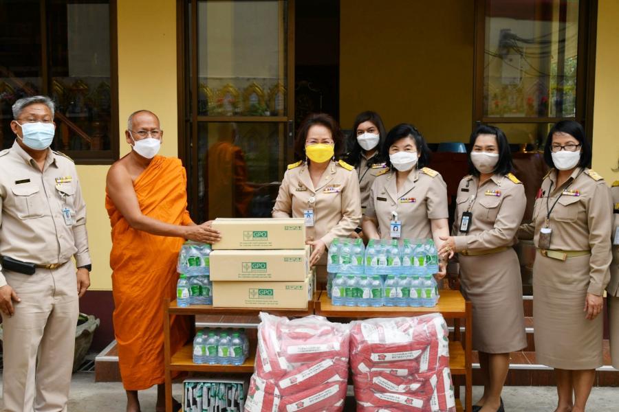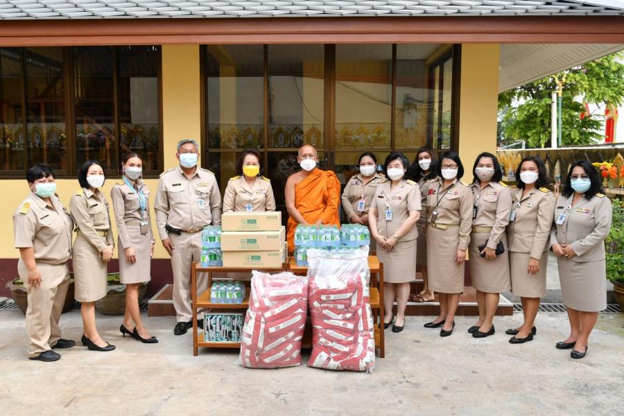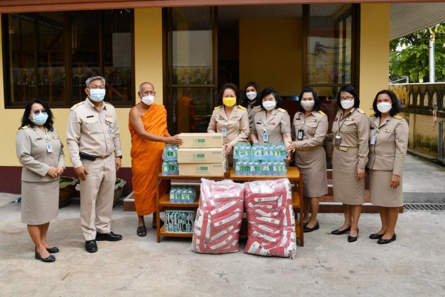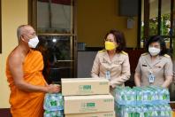เลขาธิการสภาผู้แทนราษฎร พร้อมด้วยผู้บริหาร นำสิ่งของเครื่องอุปโภคบริโภค จากโครงการสภาผู้แทน ราษฎรรวมใจ "มีแล้วแบ่งปัน" ถวายแด่ พระครูสุภกิจจานุรักษ์ เจ้าอาวาสวัดแก้วฟ้าจุฬามณี