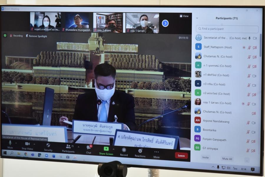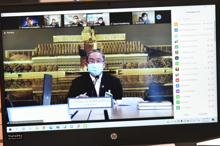 รองเลขาธิการสภาผู้แทนราษฎร เป็นประธานกล่าวเปิดโครงการเสริมสร้างขีดความสามารถให้แก่บุคลากร ที่สนับสนุนภารกิจด้านต่างประเทศของสถาบันนิติบัญญัติ เพื่อเป้าหมายการพัฒนาที่ยั่งยืน กิจกรรมที่ ๓ : สัมมนาเพื่อสร้างเครือข่ายความร่วมมือกับองค์กร ภาคประชาสังคมภายในประเทศแบบออนไลน์