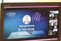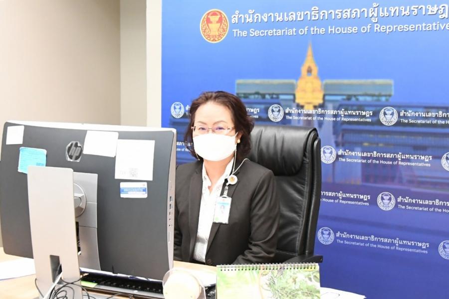 เลขาธิการสภาผู้แทนราษฎร กล่าวต้อนรับผู้เข้าร่วมสัมมนาโครงการเวทีสัมมนาสาธารณะ เรื่อง “รัฐธรรมนูญและระบบการเลือกตั้งของประเทศเยอรมนี” ผ่านแอปพลิเคชัน zoom