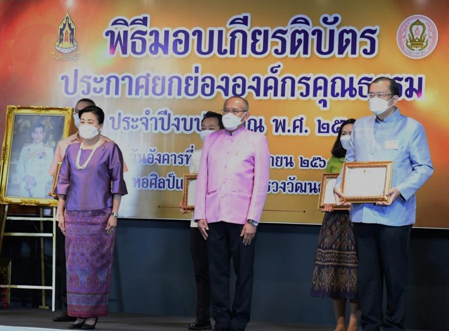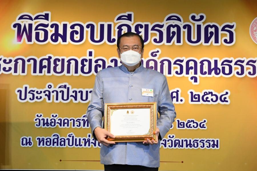 วันอังคารที่ 23 พฤศจิกายน 2564 เวลา 10.00 นาฬิกา ณ ห้อง Auditorium ชั้น G อาคารหอศิลป์แห่งชาติ กระทรวงวัฒนธรรม ถนนเทียมร่วมมิตร เขตห้วยขวาง กรุงเทพฯ นายณัฏฐกฤษฎ์ วงศ์เจริญ ที่ปรึกษาด้านระบบงานนิติบัญญัติ ในฐานะประธานกรรมการขับเคลื่อนและผลักดันการปฏิบัติตามประมวลจริยธรรมข้าราชการรัฐสภาสามัญ ได้รับมอบหมายจากเลขาธิการสภาผู้แทนราษฎรให้เข้ารับเกียรติบัตรประกาศยกย่ององค์กรคุณธรรมต้นแบบ ประจำปีงบประมาณ พ.ศ. 2564 โดยมีนางยุพา ทวีวัฒนะกิจบวร ปลัดกระทรวงวัฒนธรรม ในฐานะอนุกรรมการด้านการประเมินชุมชน องค์กร อำเภอ และจังหวัดคุณธรรม เป็นประธานในพิธีมอบเกียรติบัตร โอกาสนี้ผู้บริหาร ผู้แทนสำนักเข้ารับเกียรติบัตรระดับสำนักที่ได้รับการประกาศ ยกย่องเข้าร่วมพิธี