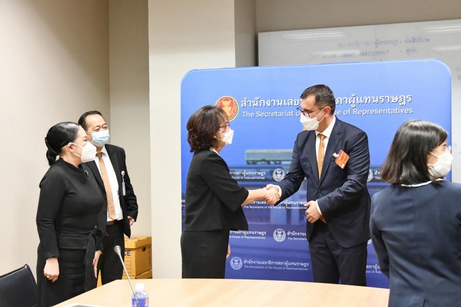 วันพุธที่ 26 มกราคม 2565 เวลา 14.00 นาฬิกา ณ ห้องทำงานเลขาธิการสภาผู้แทนราษฎร ชั้น 9 อาคารรัฐสภา นางพรพิศ เพชรเจริญ เลขาธิการสภาผู้แทนราษฎร พร้อมด้วยคณะผู้บริหารสำนักงานฯ ให้การรับรอง นายเอ็ดมอนด์ เอเฟนดิยา ผู้อำนวยการโครงการสถาบันส่งเสริมประชาธิปไตย ประจำประเทศไทย (National  Democratic  Institute : NDI) ในโอกาสเข้าเยี่ยมคารวะ เพื่อกระชับความสัมพันธ์และส่งเสริมความร่วมมือระหว่างสถาบัน NDI และสำนักงานฯ พร้อมทั้งอธิบายรายละเอียดการดำเนินงานโครงการต่าง ๆ ที่สถาบันฯ จะดำเนินงานร่วมกับรัฐสภา