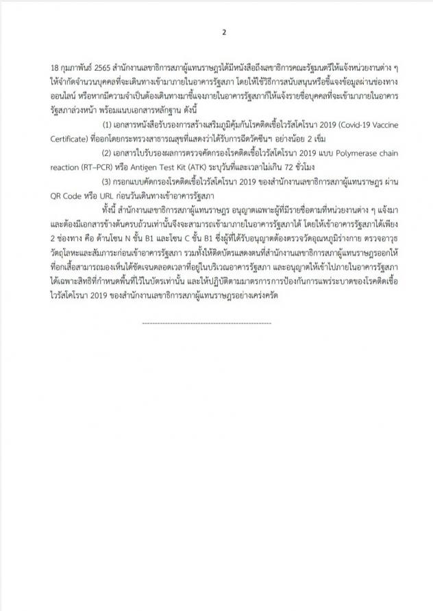 โฆษกประจำสำนักงานเลขาธิการสภาผู้แทนราษฎร แถลงข่าวเกี่ยวกับมาตรการการป้องกันการแพร่ระบาดของโรคติดเชื้อไวรัสโคโรนา 2019 (COVID-19) ของสำนักงานเลขาธิการสภาผู้แทนราษฎร