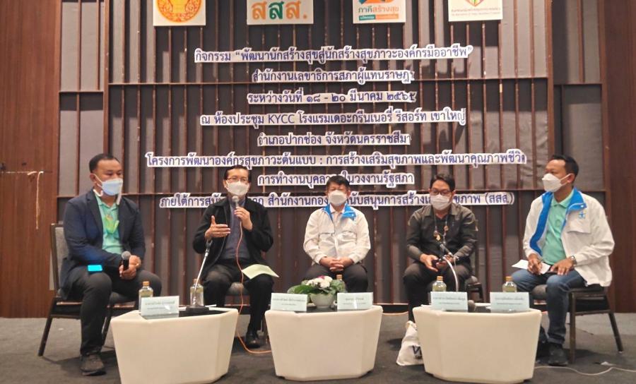 เลขาธิการสภาผู้แทนราษฎร ร่วมรับฟังการเสวนาและแลกเปลี่ยนความคิดเห็นเรื่อง กลยุทธ์การขับเคลื่อนงานสร้างสุของค์กรตามแนว Happy 8 ซึ่งเป็นหนึ่งในกิจกรรม พัฒนานักสร้างสุขสู่นักสร้างสุขภาวะองค์กรมืออาชีพ ในโครงการพัฒนาองค์กรสุขภาวะต้นแบบ : การสร้างเสริมสุขภาพและพัฒนาคุณภาพชีวิตการทำงานบุคลากรในวงงานรัฐสภา