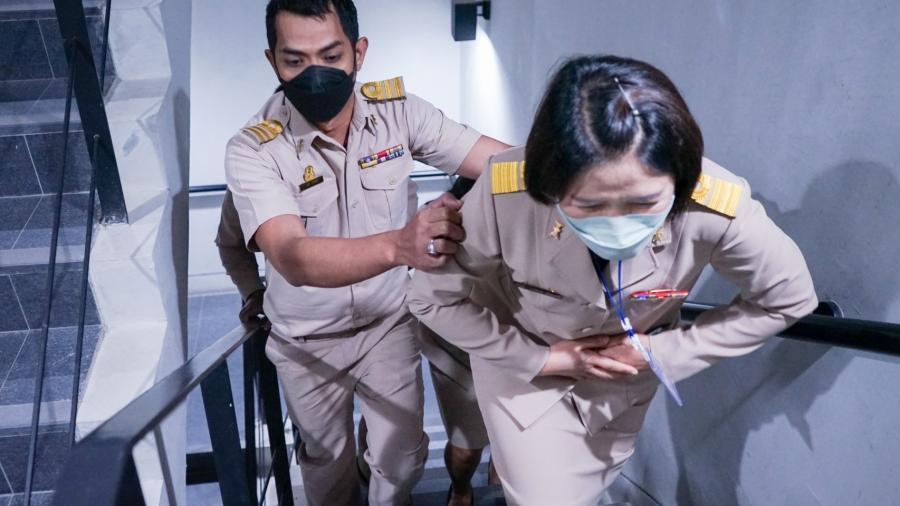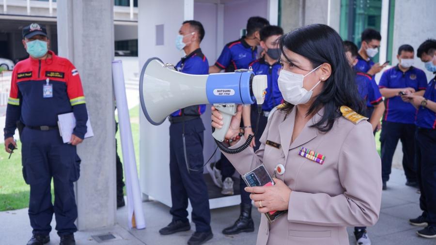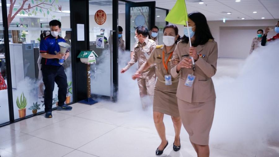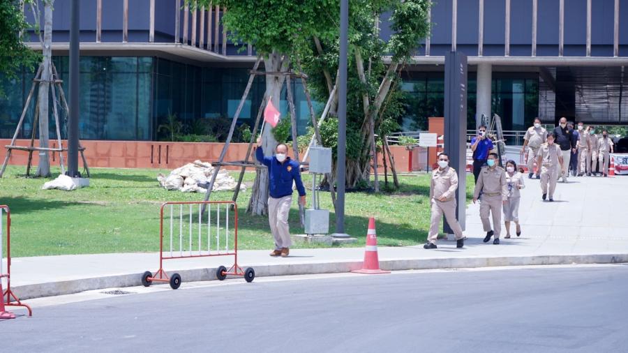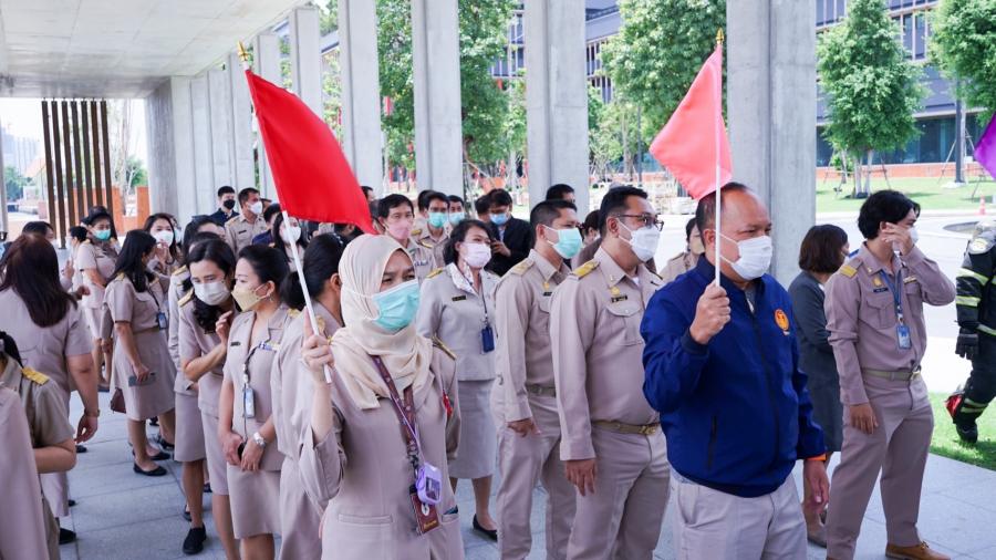 ผู้อำนวยการสำนักการพิมพ์ พร้อมด้วยบุคลากรของสำนักการพิมพ์ เข้าร่วมฝึกปฏิบัติ ฝึกซ้อมอพยพหนีไฟ ในโครงการฝึกอบรมการอพยพหนีไฟ ประจำปี 2565