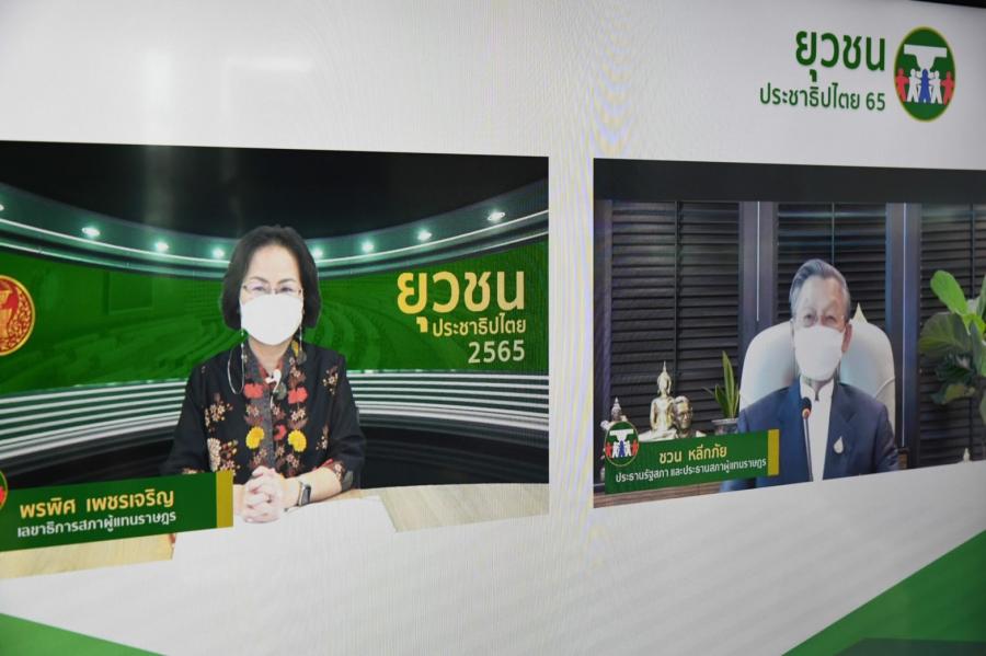 วันเสาร์ที่ 18 มิถุนายน 2565 เวลา 09.00 นาฬิกา ณ ห้องทำงาน ชั้น 10 อาคารรัฐสภา นายชวน หลีกภัย ประธานรัฐสภาและประธานสภาผู้แทนราษฎร เป็นประธานเปิดกิจกรรมยุวชนประชาธิปไตยประจำปีงบประมาณ พ.ศ. 2565 และปาฐกถาพิเศษ ประเทศรุ่งเรืองเมื่อบ้านเมืองสุจริต ผ่านสื่ออิเล็กทรอนิกส์ โดยมี นางพรพิศ เพชรเจริญ เลขาธิการสภาผู้แทนราษฎร กล่าวรายงาน ในการนี้ นายอิสระ เสรีวัฒนวุฒิ สมาชิกสภาผู้แทนราษฎร และผู้บริหารสำนักงานเลขาธิการสภาผู้แทนราษฎร ร่วมรับฟัง