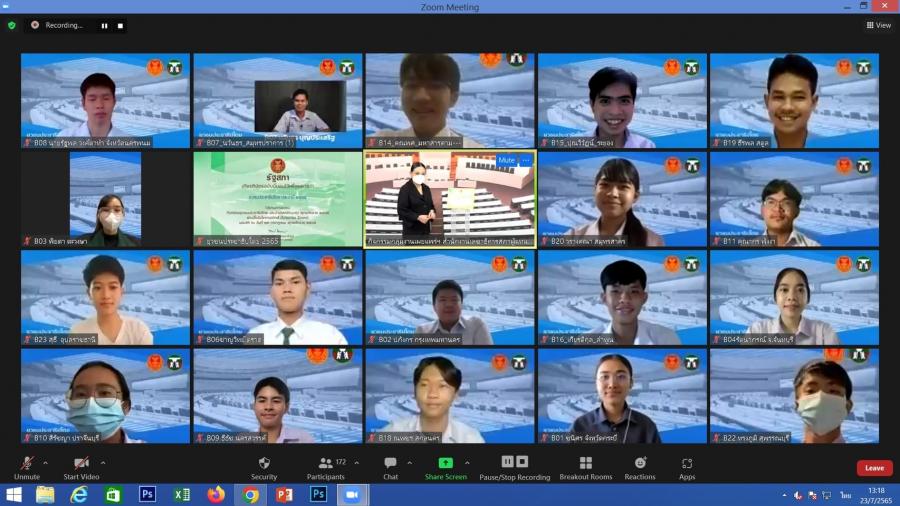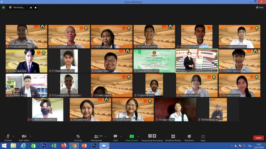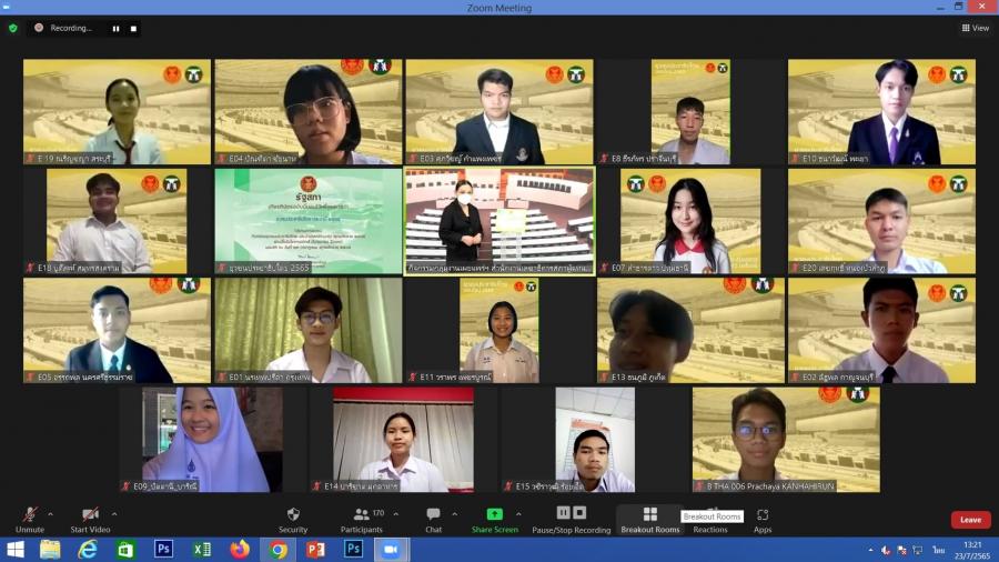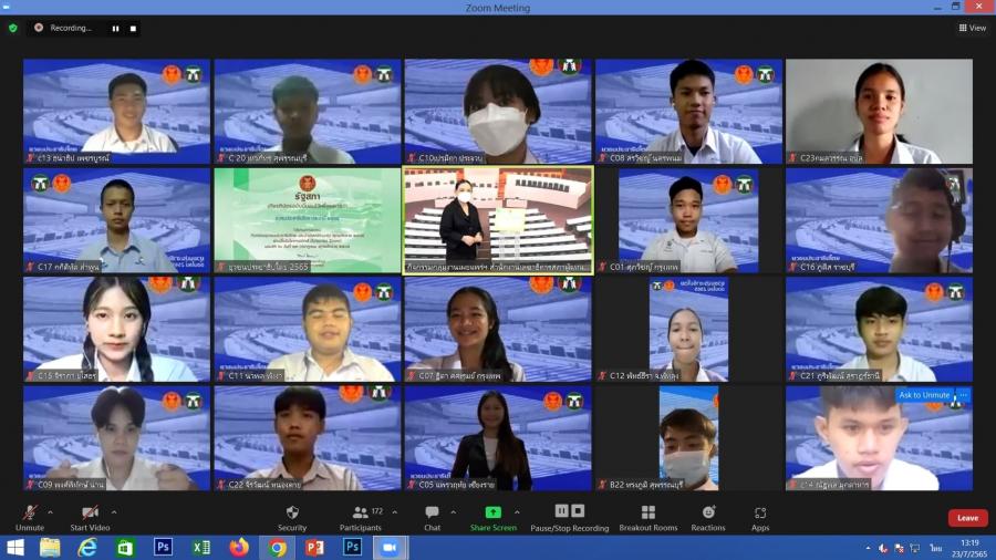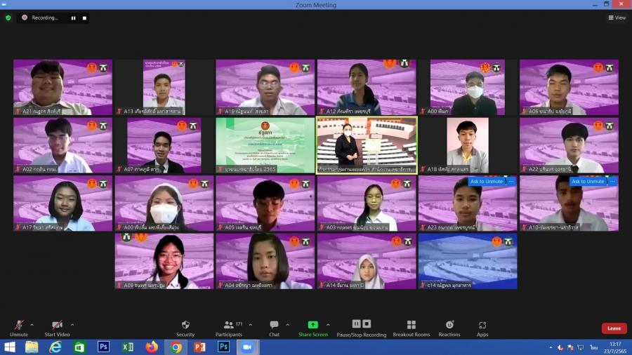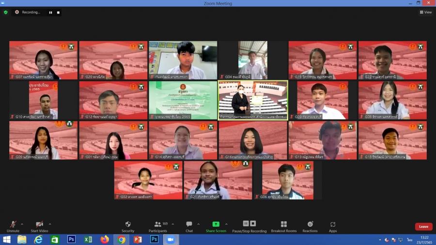 น.ส.โสมอุษา บูรณะเหตุ รองเลขาธิการสภาผู้แทนราษฎร เป็นประธานในพิธีปิดการอบรมยุวชนประชาธิปไตย ประจำปี 2565 ผ่านสื่ออิเล็กทรอนิกส์