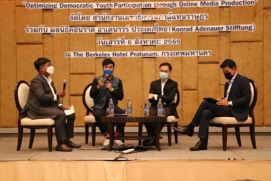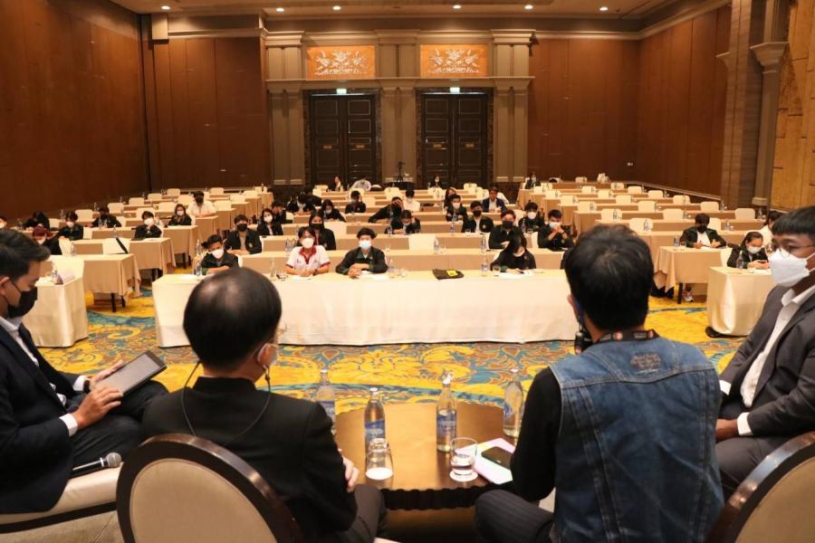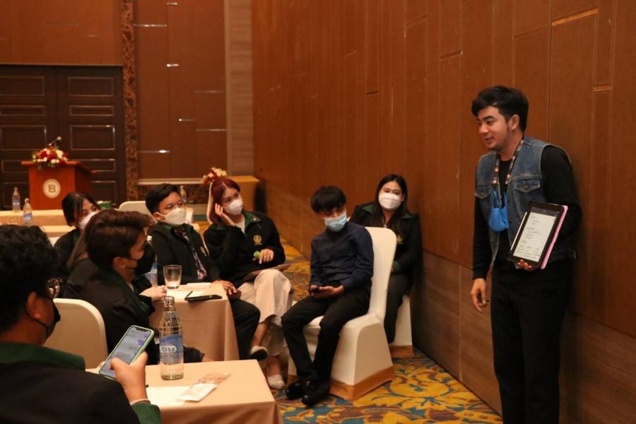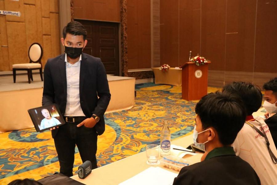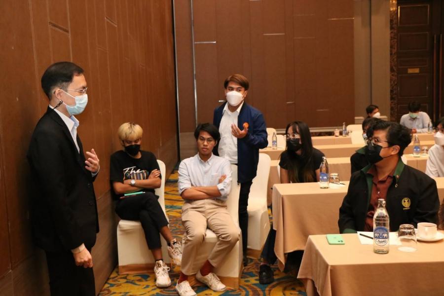การแบ่งกลุ่มฝึกปฏิบัติ เรื่อง การเสริมศักยภาพด้านการเป็นผู้ดำเนินรายการ การรวบรวมประเด็นวิชาการ และการประชาสัมพันธ์ ในการอบรมเชิงปฏิบัติการ เรื่อง การเพิ่มประสิทธิภาพยุวชนประชาธิปไตยเพื่อการสร้างสรรค์สื่อออนไลน์ ณ โรงแรม เดอะ เบอร์เคลีย์ ประตูน้ำ กรุงเทพฯ
