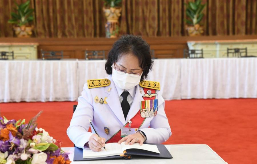 เลขาธิการสภาผู้แทนราษฎร ถวายความเคารพเบื้องหน้าพระบรมฉายาลักษณ์สมเด็จพระนางเจ้าสิริกิติ์ พระบรมราชินีนาถ พระบรมราชชนนีพันปีหลวง และร่วมลงนามถวายพระพร ณ ห้องแดง อาคารหน่วยราชการในพระองค์ 904 ในพระบรมมหาราชวัง