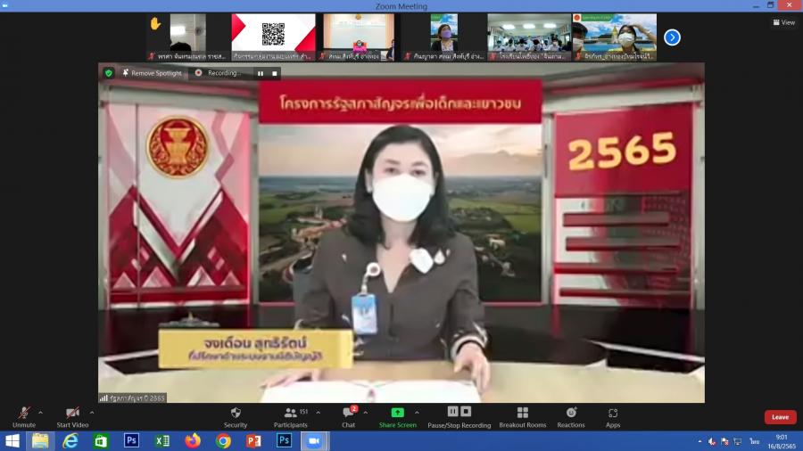 วันอังคารที่ 16 สิงหาคม 2565 เวลา 09.00 นาฬิกา ณ ศูนย์ปฏิบัติการจัดโครงการรัฐสภาสัญจรเพื่อเด็กและเยาวชน ห้องประชุมสำนักประชาสัมพันธ์ ชั้น 2 อาคารรัฐสภา นางจงเดือน สุทธิรัตน์ ที่ปรึกษาด้านระบบงานนิติบัญญัติ เป็นประธานในพิธีเปิดโครงการรัฐสภาสัญจรเพื่อเด็กและเยาวชน ประจำปีงบประมาณ พ.ศ. 2565 ครั้งที่ 2 ภาคกลาง จังหวัดอ่างทอง ผ่านสื่ออิเล็กทรอนิกส์ โดยมี นางอัจฉรา จูยืนยง ผู้อำนวยการสำนักประชาสัมพันธ์ กล่าวรายงาน