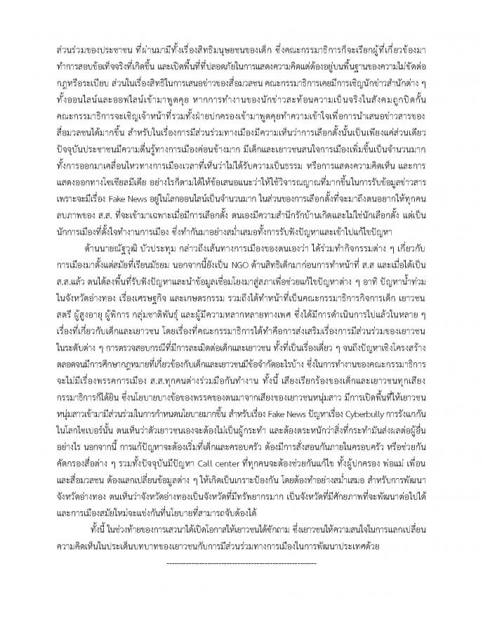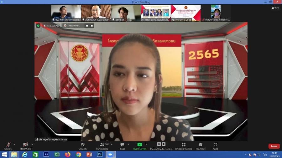 การเสวนาเรื่อง "บทบาทของเยาวชนกับการมีส่วนร่วมทางการเมืองในการพัฒนาประเทศให้ยั่งยืน" ในโครงการรัฐสภาสัญจรเพื่อเด็กและเยาวชน ประจำปี 2565 ผ่านสื่ออิเล็กทรอนิกส์ ภาคกลาง จังหวัดอ่างทอง