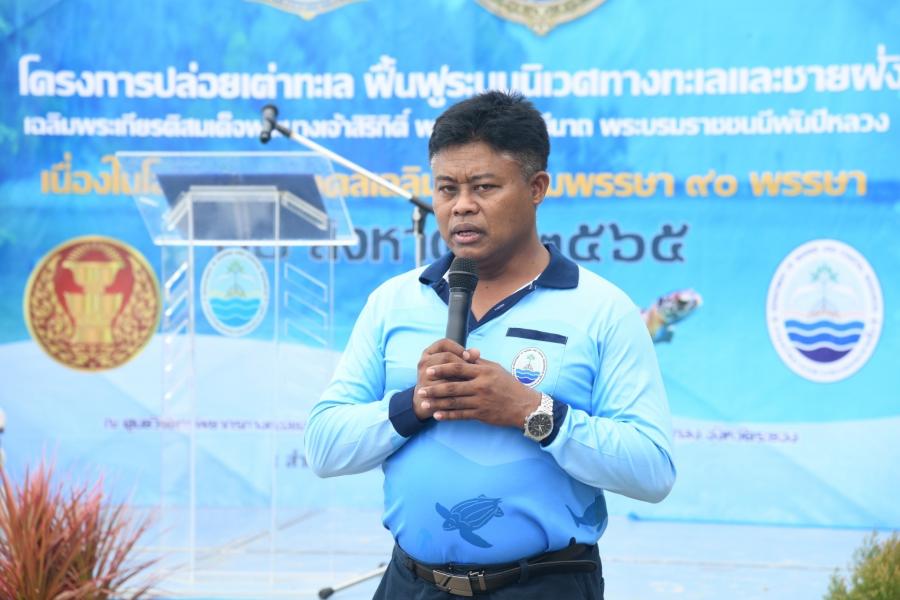 โอกาสนี้ เลขาธิการสภาผู้แทนราษฎร กล่าวเปิดโครงการความว่า “รู้สึกยินดีและเป็นเกียรติอย่างยิ่งที่ได้มาเป็นประธานในพิธีเปิดโครงการปล่อยเต่าทะเล ฟื้นฟูระบบนิเวศทางทะเลและชายฝั่งเฉลิมพระเกียรติสมเด็จพระนางเจ้าสิริกิติ์ พระบรมราชินีนาถ พระบรมราชชนนีพันปีหลวง เนื่องในโอกาสมหามงคลเฉลิมพระชนมพรรษา 90 พรรษา 12 สิงหาคม 2565 ณ ศูนย์วิจัยทรัพยากรทางทะเลและชายฝั่งอ่าวไทยฝั่งตะวันออก พื้นที่เกาะมันใน อำเภอแกลง จังหวัดระยอง ในวันนี้ การจัดโครงการปล่อยเต่าทะเล ฟื้นฟูระบบนิเวศทางทะเลและชายฝั่งเฉลิมพระเกียรติฯ ขึ้น เพื่อเป็นการน้อมนำกระแสพระราชดำริสมเด็จพระนางเจ้าสิริกิติ์ พระบรมราชินีนาถ พระบรมราชชนนีพันปีหลวง ในการดำเนินโครงการอนุรักษ์เต่าทะเลจะเป็นการปลูกจิตสำนึกในการมีส่วนร่วมในกระบวนการอนุรักษ์ทรัพยากรธรรมชาติและสิ่งแวดล้อมในหมู่ข้าราชการ พนักงานราชการ และลูกจ้างสำนักงานเลขาธิการสภาผู้แทนราษฎร และเนื่องในโอกาสมหามงคลเฉลิมพระชนมพรรษา 90 พรรษา 12 สิงหาคม 2565 นับเป็นมหามงคลยิ่งที่สำนักงานเลขาธิการสภาผู้แทนราษฎร ร่วมกับ กรมทรัพยากรทางทะเลและชายฝั่ง จัดให้มีโครงการปล่อยเต่าทะเล ฟื้นฟูระบบนิเวศทางทะเลและชายฝั่งเฉลิมพระเกียรติฯ ขึ้น เพื่อเฉลิมพระเกียรติสมเด็จพระนางเจ้าสิริกิติ์ พระบรมราชินีนาถ พระบรมราชชนนีพันปีหลวง โดยการเพาะขยายพันธุ์ปล่อยสู่ทะเลตามธรรมชาติ เพื่อรักษาระบบนิเวศทางทะเลให้สมดุล