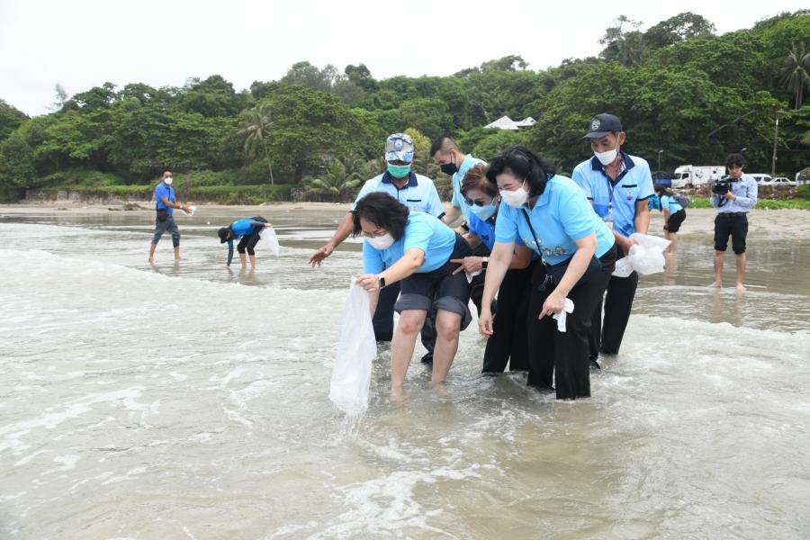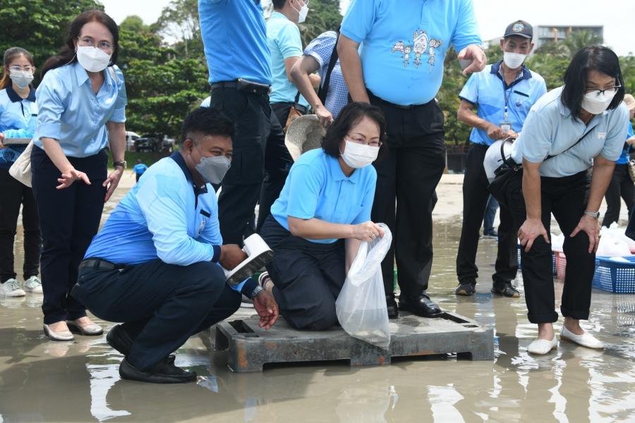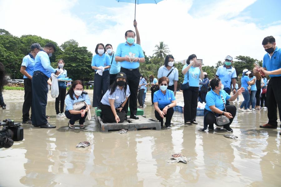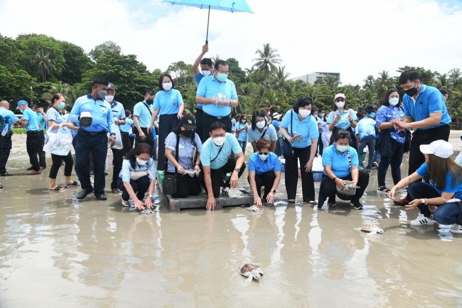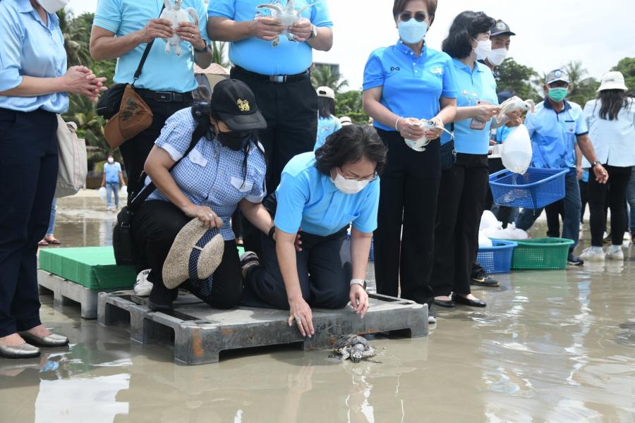 จากนั้น คณะผู้บริหารสำนักงานฯ และผู้เข้าร่วมโครงการ ร่วมกันปล่อยเต่าทะเลอายุ 8 เดือน จำนวน 30 ตัว และปลากะพงขาว จำนวน 1,500 ตัว ลงสู่ทะเล ทั้งนี้ สำนักงานเลขาธิการสภาผู้แทนราษฎร ได้ตระหนักถึงความสำคัญของการอนุรักษ์ทรัพยากรธรรมชาติและสิ่งแวดล้อม โดยได้ร่วมมือกับภาคีเครือข่าย หน่วยงานภาครัฐและภาคเอกชนในการทำกิจกรรมสาธารณประโยชน์เพื่อสังคมและสิ่งแวดล้อมมาโดยตลอดและจัดโครงการด้านการอนุรักษ์ทรัพยากรธรรมชาติและสิ่งแวดล้อมหลากหลายโครงการอย่างต่อเนื่องเป็นประจำ เนื่องในโอกาสมหามงคลเฉลิมพระชนมพรรษา 90 พรรษา 12 สิงหาคม 2565 สำนักงานเลขาธิการสภาผู้แทนราษฎร จึงได้จัดโครงการปล่อยเต่าทะเลฟื้นฟูระบบนิเวศทางทะเลและชายฝั่งเฉลิมพระเกียรติสมเด็จพระนางเจ้าสิริกิติ์ พระบรมราชินีนาถ พระบรมราชชนนีพันปีหลวง โดยมีวัตถุประสงค์เพื่อเฉลิมพระเกียรติสมเด็จพระนางเจ้าสิริกิติ์ พระบรมราชินีนาถ พระบรมราชชนนีพันปีหลวง เนื่องในโอกาสมหามงคลเฉลิม พระชนมพรรษา 90 พรรษา 12 สิงหาคม 2565 ตลอดจนเพื่อปลูกฝังจิตสำนึกให้บุคลากรสำนักงานเลขาธิการสภาผู้แทนราษฎรและบุคคลทั่วไปให้มีความจงรักภักดีต่อสถาบันพระมหากษัตริย์ รวมทั้งเพื่อเพิ่มประชากรเต่าทะเลในด้านชีวิวิทยาเต่าทะเลธรรมชาติ และฟื้นฟูระบบนิเวศทางทะเลและชายฝั่งให้เป็นแหล่งเรียนรู้ด้านทรัพยากรทางทะเล และสร้างจิตสำนึกการมีส่วนร่วมเพื่อพัฒนาสิ่งแวดล้อมทรัพยากรทางทะเล ฟื้นฟูระบบนิเวศทางทะเลให้สมดุล และสร้างความสามัคคีของข้าราชการ พนักงานราชการ ลูกจ้างของสำนักงานเลขาธิการสภาผู้แทนราษฎร รวมถึงผู้เข้าร่วมโครงการและประชาชนในพื้นที่ ตลอดจนหน่วยงานที่เกี่ยวข้องให้มีโอกาสทำกิจกรรมบำเพ็ญประโยชน์ร่วมกัน
