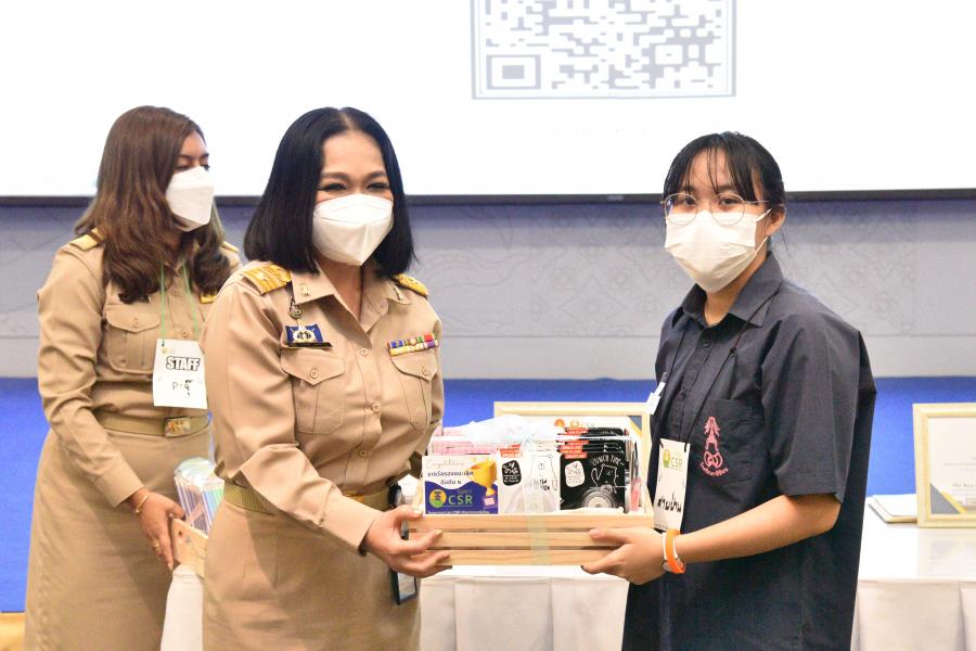 ในการนี้ น.ส.โสมอุษา บูรณะเหตุ  มอบรางวัลให้แก่ผู้เข้ารับการอบรมในกิจกรรมฐานความรู้ รางวัลชนะเลิศ ได้แก่ สีน้ำเงิน รางวัลรองชนะเลิศ