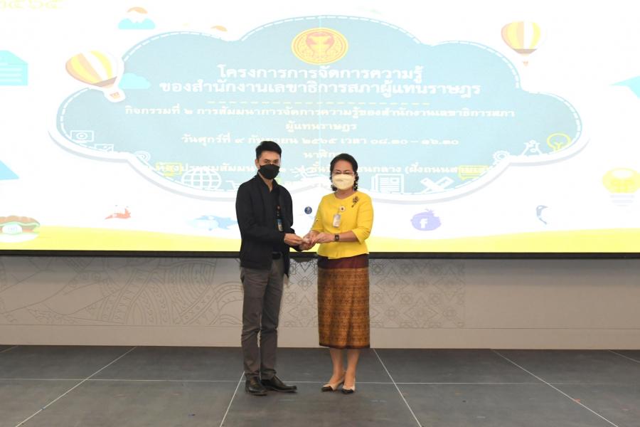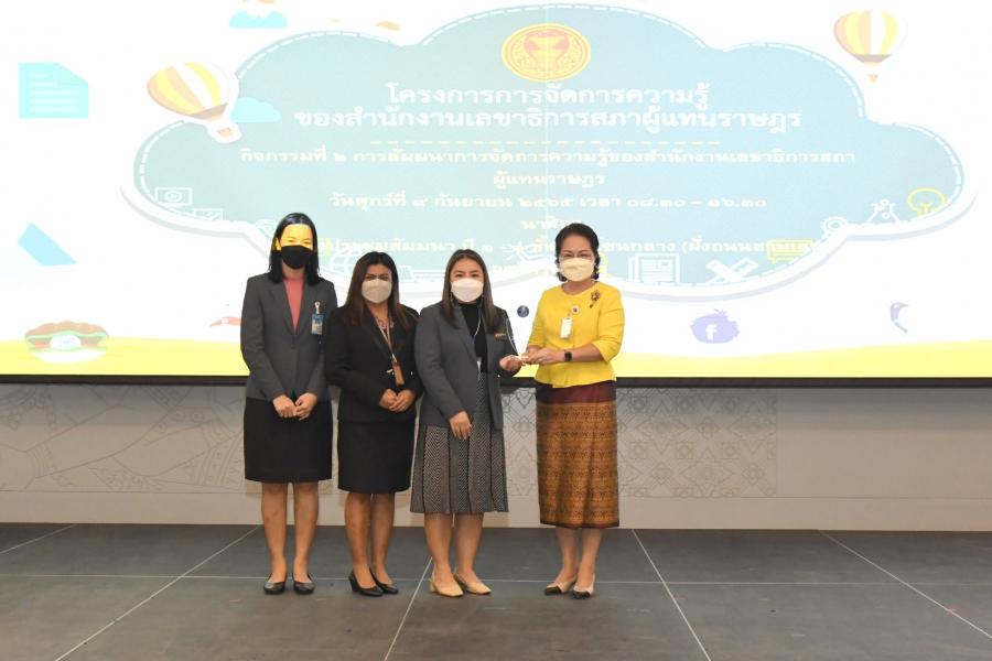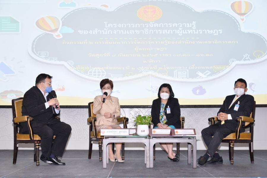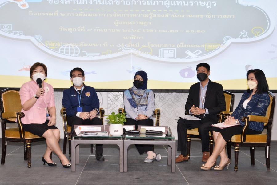 วันศุกร์ที่ 9 กันยายน 2565 เวลา 13.00 –16.00 นาฬิกา ณ ห้องประชุมสัมมนา B1-1 ชั้น B1 อาคารรัฐสภา นางพรพิศ เพชรเจริญ เลขาธิการสภาผู้แทนราษฎร และนายณัฏฐกฤษฎ์ วงศ์เจริญ ที่ปรึกษาด้านระบบงานนิติบัญญัติ เข้าร่วมรับฟัง การอภิปรายแลกเปลี่ยนเรียนรู้ ในหัวข้อฝากไว้ก่อนจาก โดย นางสุภาวดี ขีดขิน ผู้อำนวยการสำนักงานเลขานุการ ก.ร. นายนพรัตน์ ทวี ผู้อำนวยการสำนักงบประมาณของรัฐสภา และ      น.ส.รุ่งนภา ขันธิโชติ ผู้อำนวยการสำนักบริการทางการแพทย์ประจำรัฐสภา และการอภิปรายเรื่ององค์ความรู้ของสำนักงานเลขาธิการสภาผู้แทนราษฎร จำนวน 4 องค์ความรู้ โดยผู้แทนจากคณะอนุกรรมการจัดทำองค์ความรู้ยุทธศาสตร์ที่ 1 - 4 ในการนี้ คณะผู้บริหาร ข้าราชการ และบุคลากรของสำนักงานเลขาธิการสภาผู้แทนราษฎร ร่วมรับฟังการอภิปราย