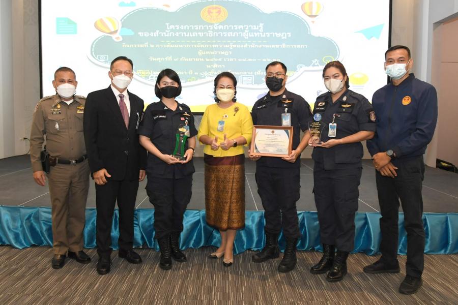 จากนั้น นางพรพิศ  เพชรเจริญ เลขาธิการสภาผู้แทนราษฎร เป็นประธานในพิธีมอบรางวัลแนวปฏิบัติที่เป็นเลิศ (Best Practices) ประจำปีงบประมาณ พ.ศ. 2565 ของสำนักงานเลขาธิการสภาผู้แทนราษฎร โดยผลงานที่ได้รับรางวัลระดับดีเด่น ได้แก่