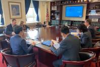 เลขาธิการสภาผู้แทนราษฎร พร้อมด้วย นายสาธิต ประเสริฐศักดิ์ รองเลขาธิการสภาผู้แทนราษฎร และคณะ รับฟังการบรรยายจากเจ้าหน้าที่สำนักงบประมาณของรัฐสภา Mark Hadley Chief Operating Officer และ Heri Gullo ผู้อำนวยการฝ่ายวิเคราะห์งบประมาณ