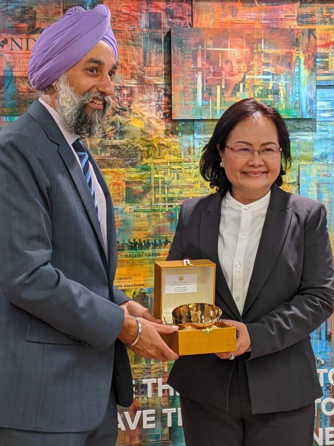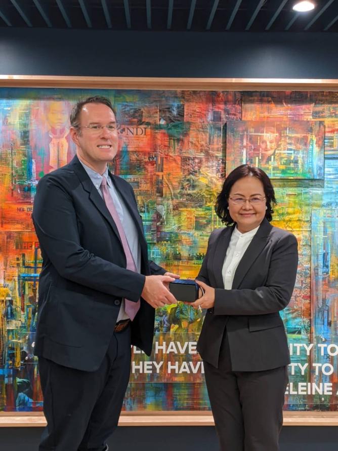 เมื่อวันที่ 23 กันยายน 2565 เวลา 09.00 นาฬิกา (ตามเวลาท้องถิ่น ณ กรุงวอชิงตัน ดี.ซี. ประเทศสหรัฐอเมริกา) นางพรพิศ เพชรเจริญ เลขาธิการสภาผู้แทนราษฎร พร้อมด้วย นายสาธิต ประเสริฐศักดิ์ รองเลขาธิการสภาผู้แทนราษฎร และคณะ ได้เข้าพบ Mr. Derek Mitchell ประธานสถาบัน NDI, Mr. Manpreet Singh Anand, NDI Asia Regional Director และ Mr.  Adam Nelson, NDI Senior Advisor ซึ่งการหารือในครั้งนี้ได้มีการพูดคุยแลกเปลี่ยนถึงภาพรวมในการเดินทางเยือนสหรัฐอเมริกาในครั้งนี้ ที่แม้จะมีระยะเวลาที่สั้นแต่ได้พบปะกับหน่วยงานที่หลากหลายทั้งหน่วยงานภายในของ NDI องค์กรภาคเอกชน รวมถึงหน่วยงานภายใต้รัฐสภาสหรัฐอเมริกา ซึ่งเป็นโอกาสที่หาได้ยากยิ่ง โดยเลขาธิการกล่าวว่า ได้มีโอกาสแลกเปลี่ยนและได้รับความรู้ที่หลากหลายและครอบคลุมอันจะเป็นประโยชน์ต่อการพัฒนาศักยภาพของบุคลากร รวมถึงพัฒนาความร่วมมือระหว่างหน่วยงานในอนาคตด้วย และหวังว่าความร่วมมือระหว่างสำนักงานเลขาธิการสภาผู้แทนราษฎรกับสถาบัน NDI จะดำเนินต่อไปอย่างต่อเนื่องและขยายขอบเขตที่กว้างขวางมากยิ่งขึ้น
