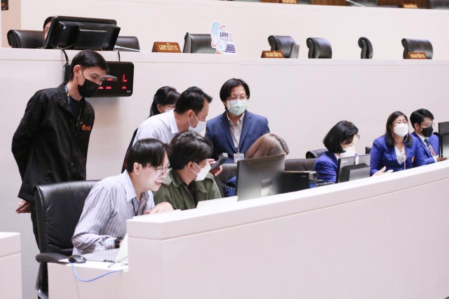 วันศุกร์ที่ 7 ตุลาคม 2565 เวลา 09.30 นาฬิกา ณ ห้องประชุมสภาผู้แทนราษฎร ชั้น 2 อาคารรัฐสภา นายสาธิต ประเสริฐศักดิ์ รองเลขาธิการสภาผู้แทนราษฎร ในฐานะประธานคณะอนุกรรมการยกร่างประกาศสภาผู้แทนราษฎรในเรื่องการกำหนดให้ใช้ระบบควบคุมการประชุมที่มีความปลอดภัยมั่นคงเพื่อจัดการประชุมสภาผู้แทนราษฎร การประชุมคณะกรรมาธิการ การพิจารณากระทู้ถามแยกเฉพาะ ผ่านสื่ออิเล็กทรอนิกส์ เข้าร่วมการทดสอบด้านเทคนิคและระบบที่เกี่ยวข้องในการทดสอบการจัดประชุมสภาผู้แทนราษฎร ผ่านสื่ออิเล็กทรอนิกส์ ครั้งที่ 3 โดยมี นางสาวโสมอุษา บูรณะเหตุ รองเลขาธิการสภาผู้แทนราษฎร ในฐานะรองประธานคณะอนุกรรมการฯ คณะผู้บริหารและบุคลากรของสำนักงานฯ เข้าร่วมการทดสอบ ซึ่งในวันนี้เป็นการทดสอบการประชุมสภาฯ โดยเริ่มตั้งแต่การเตรียมความพร้อมด้านระบบ/เครื่องมือ/อุปกรณ์ที่เกี่ยวข้อง การลงทะเบียนเข้าร่วมประชุม